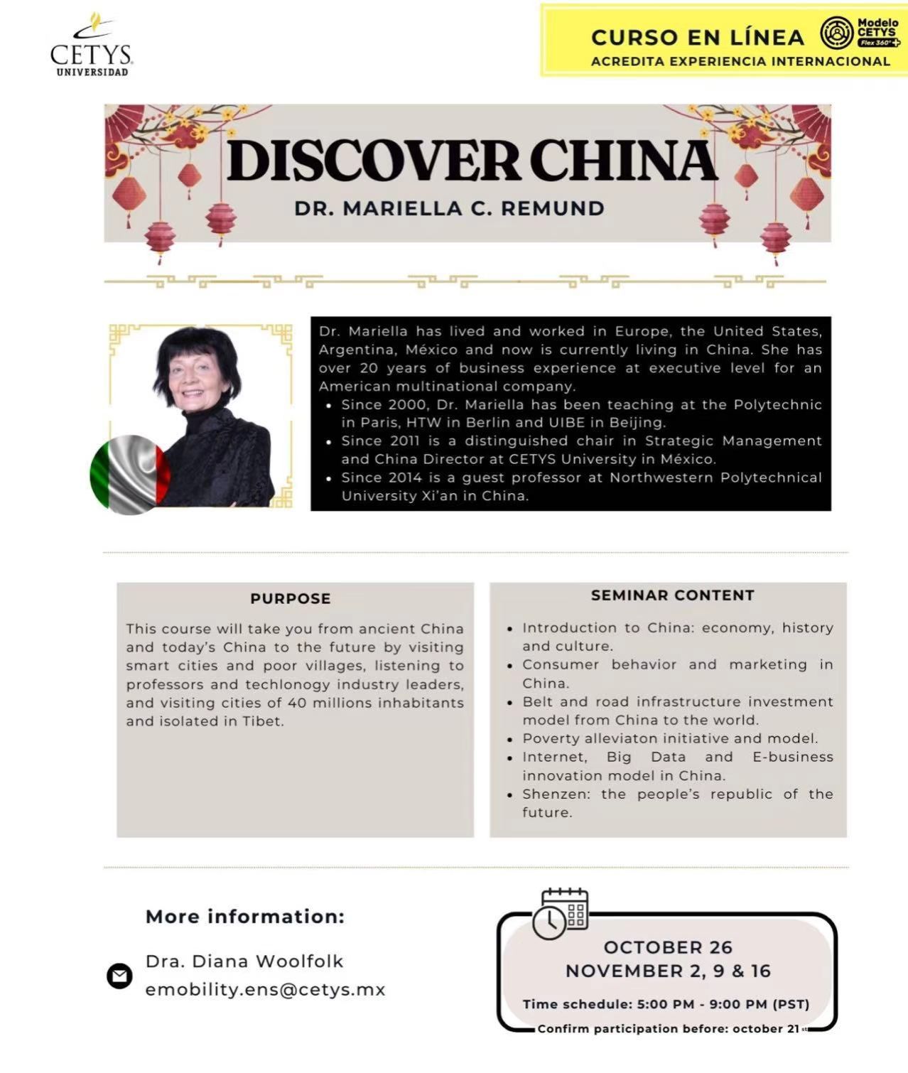 墨西哥塞提斯大学成立于1961年,位于墨西哥北部,是墨西哥的卓越大学。墨西哥塞提斯大学与我校有多年的合作基础,现计划于2024年10-11月开展线上“Discover China Autumn 2024”国际课程。同学们可以在课程学习中认识来自不同国家的学生,帮助外国学生更好地了解今天的中国、中国传统文化和历史等,同时加深对不同文化的认知和理解。