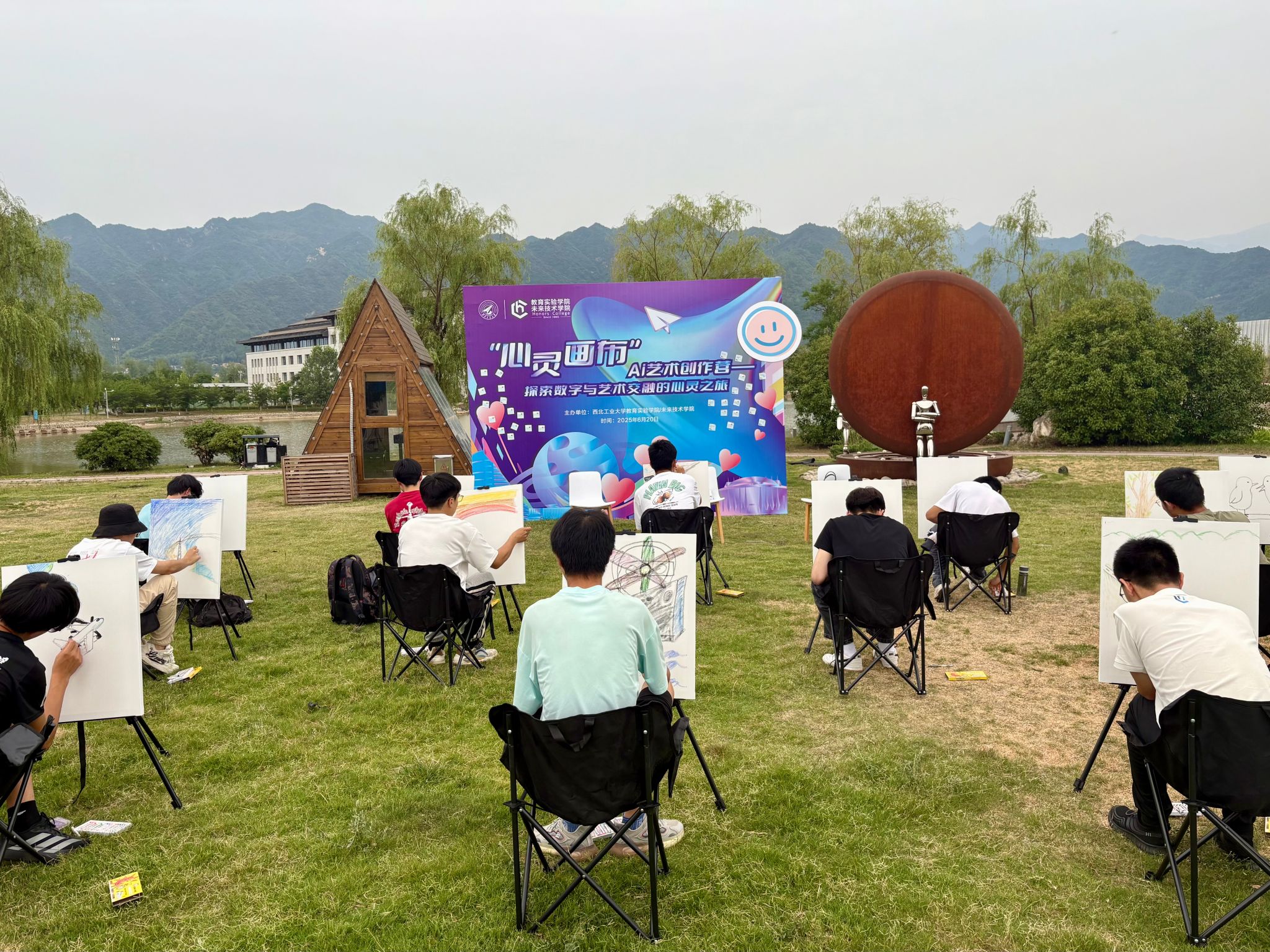 为助力学生探索内心世界,6月20日,bat365在线官网平台/未来技术学院于在启翔湖草坪举办“心灵画布”AI艺术创作营,借助AI技术与绘画艺术的融合,为学生打造独特的心理表达渠道,以户外绘画的形式,通过专业心理老师的解读,帮助学生深入理解自身创作背后的心理状态,掌握基础的心理调节方法。