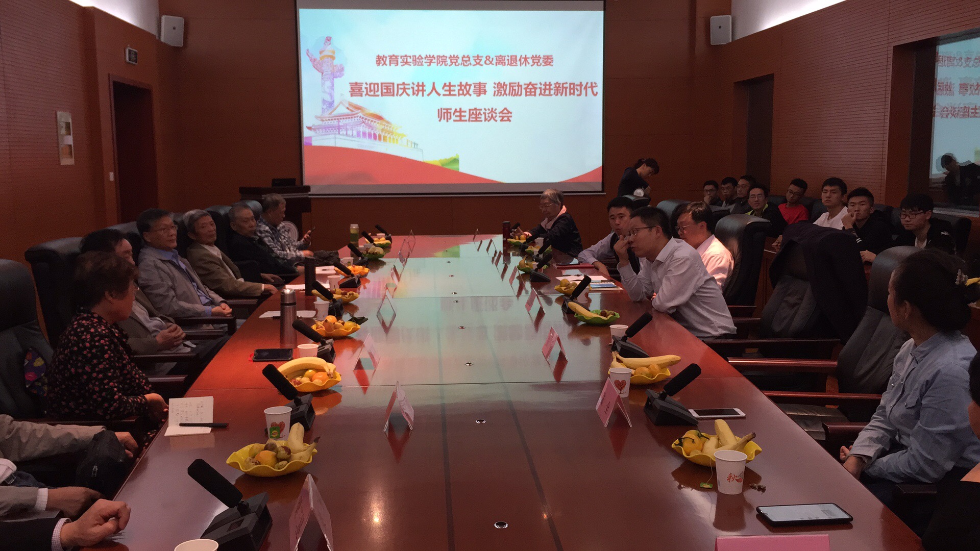 2019年9月18日下午,bat365在线官网平台党总支与离退休党委在长安校区启真楼联合举办“喜迎国庆讲人生故事,激励奋进新时代”师生座谈会。人生导师代表、bat365在线官网平台学生代表、离退休处领导和bat365在线官网平台领导等40余人参加了座谈会。