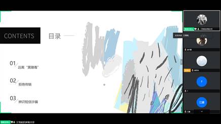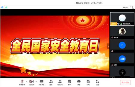 4月17日下午17:00,HC001901班线上召开国家安全教育主题班会,班主任王靖宇老师、辅导员黄芮老师参加会议,班会由班长仇茂盛主持。