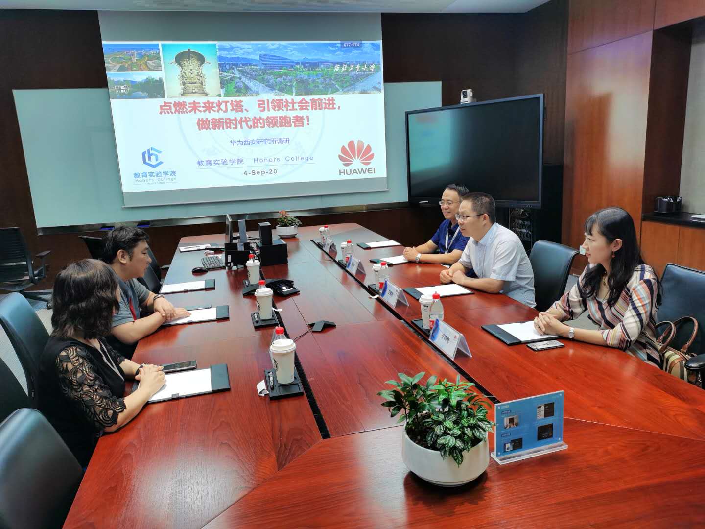 9月4日,bat365在线官网平台王掩刚院长、张文涛书记以及学院办公室主任于鸣鹭、2018级辅导员别晓峰等一行4人前往华为公司西安研究所开展拔尖人才校企联合培养调研交流活动。