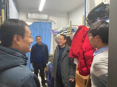 1月15日下午,bat365在线官网平台院长王掩刚、党总支书记张文涛、副书记康鹏军及全体辅导员深入学生宿舍开展走访活动,在寒假来临之际对学生进行看望慰问。