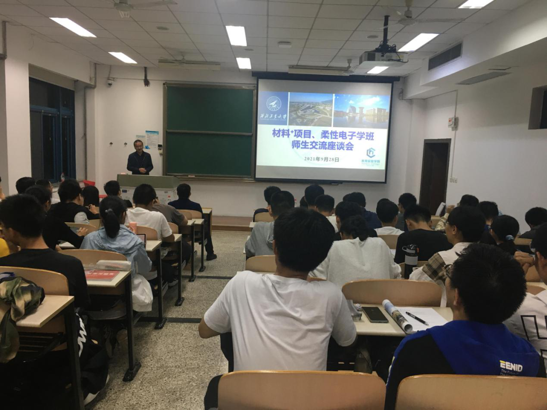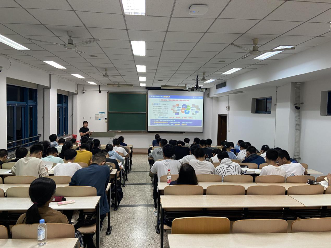 随后,韩云虎教授从柔性电子研究院的发展历程、学科方向、师资力量、科研成果、人才培养等方面向同学们进行了详细介绍,让同学们了解到柔性电子材料作为创造未来的颠覆性科技对于国家的重要意义以及其广泛的应用。