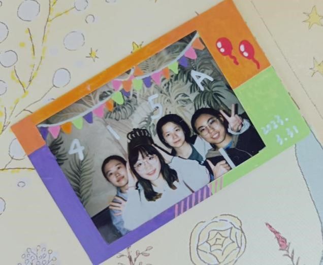 “这是一张星B415A寝室的合照,拍摄于2023年3月31日,当时我们正在校外的餐厅为照片中戴着生日王冠的同学庆生。现在它被张贴在我们的照片墙上,将欢声笑语和二十岁的回忆长久留存。”
