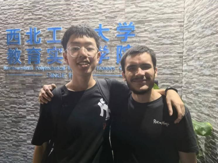 “这张图见证了一场国际友谊。他是我和一位德国留学生Kenny的合影,此后受疫情影响,他一直未能回到西工大上课,但我们之间的交流从未断过,我会为他家乡的疫情而担心,他也会我的学业压力分忧。”