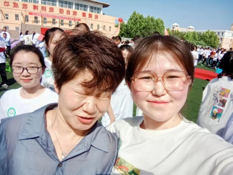 当时我们每一个人都沉浸在面临毕业的兴奋与高考压力的两极情绪中,都急于用照片去记录下不忍离别的那些人。当我和所有人都合影之后,我才敢和周老师合影。周老师在我的印象中是一丝不苟、非常严肃的,我的数学成绩平常不是很出色,总是被她提溜到办公室改错题,因而高三时我对她有一种深深的恐惧感。但是那天合影时她对我第一次露出了笑容,感觉那个笑容能融化世界上所有的冰川。合影那天难得好天气,阳光刺眼,拍照的那一瞬间老师眼睛是闭着的,嘴上是噙着笑的,这对我来说是无声的肯定。旁边意外出镜的同学还看向镜头,也微笑着。我很想把这张照片留存,又害怕老师不愿意,有些忐忑询问老师要不要再拍一张。之后老师跟我说的话我会记一辈子!