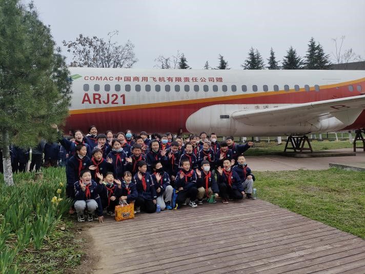“前一段时间,有一群小学生来到西工大研学。春日的校园,风景优美,花开满天。小朋友们一路上都非常好奇和激动,在听完大飞机的讲解之后,他们非常开心,在大飞机前合影留念。小朋友的笑是不掺有杂质的,在无忧无虑的年纪,在暖阳春日,是最治愈人的风景线。”