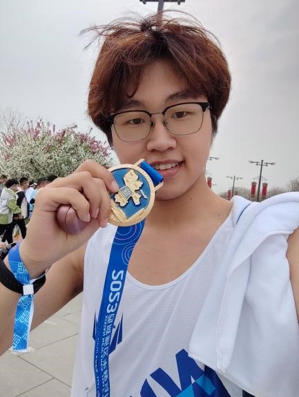“这是我在21.0975西咸新区半程马拉松完赛后与奖牌合影的微笑。自打入学以来,已经长跑有一千公里有余,但是在新冠疫情与甲流之后,我的心肺功能与肌肉力量都出现了不小的下降,如此,在跑前两周,加紧训练,最终在西安咸阳马拉松成功完赛。欲文明其精神,必先野蛮其身体,如此之身体,便是我努力奋斗之本钱,如此,便是我的最美微笑。”