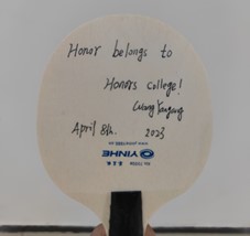 在本次比赛中,王掩刚院长特意为运动员制作了精美的奖品,他在小小乒乓球签名板上写下对同学们的寄语,获得奖品的同学对这样的奖励爱不释手。