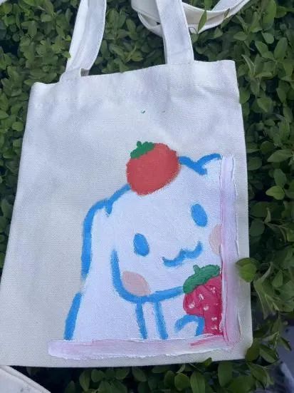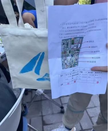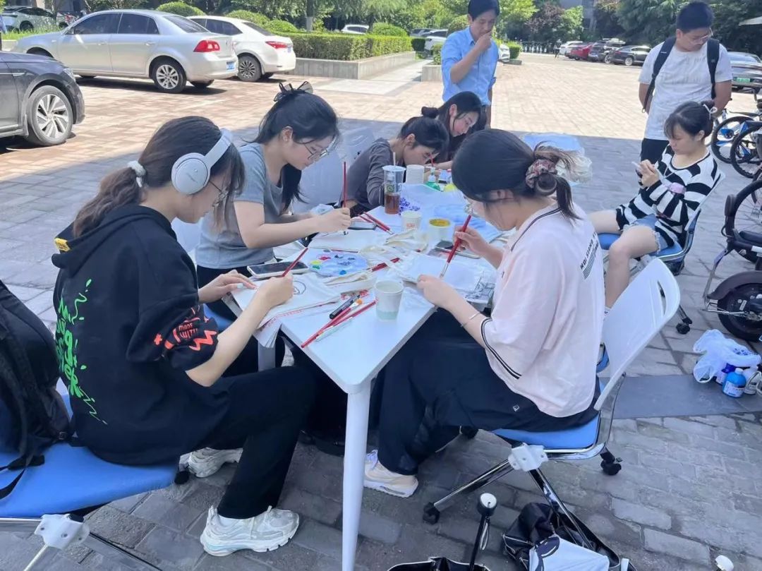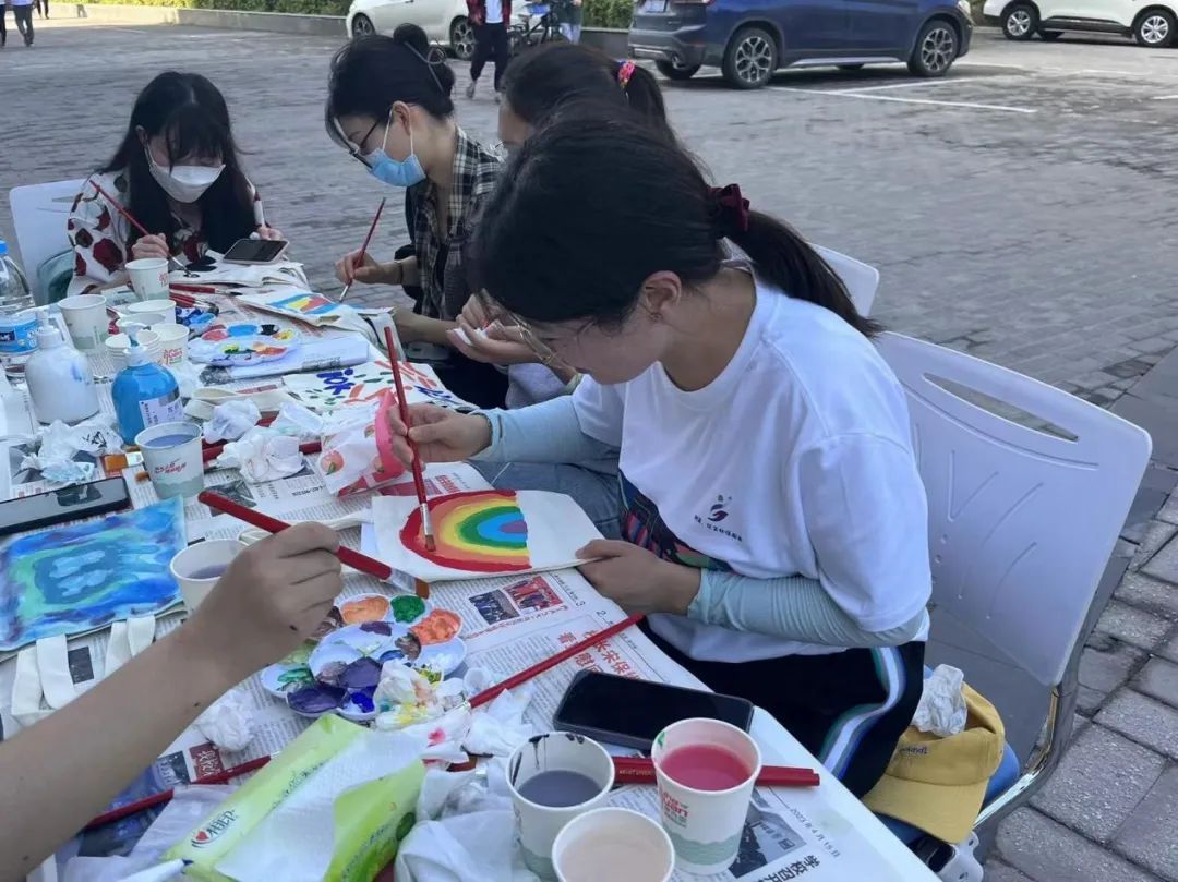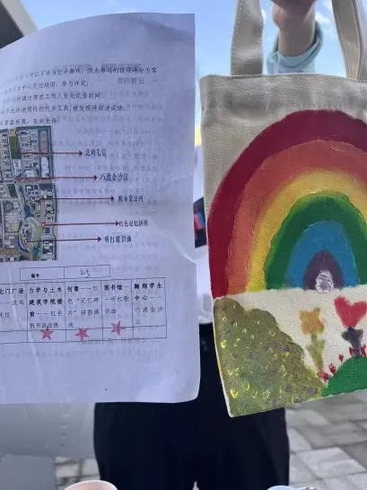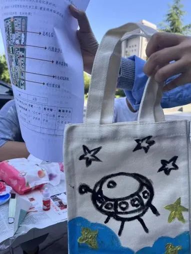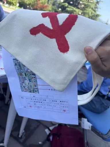 工作人员早早在这里布置好场地,他们将白色帆布袋、颜料、笔发放给到达该点位的同学们。活动现场,志愿者首先向参赛同学介绍彩绘帆布包的各种材料、制作流程和绘画技巧等内容。随后,大家便认真地绘画起来,沉浸在手工的乐趣中。同学们纷纷发挥创意,结合红色主题与学校特色,原本简单的白色帆布袋被点缀一新,同学们用自己的方式表达对党和祖国诚挚的热爱。