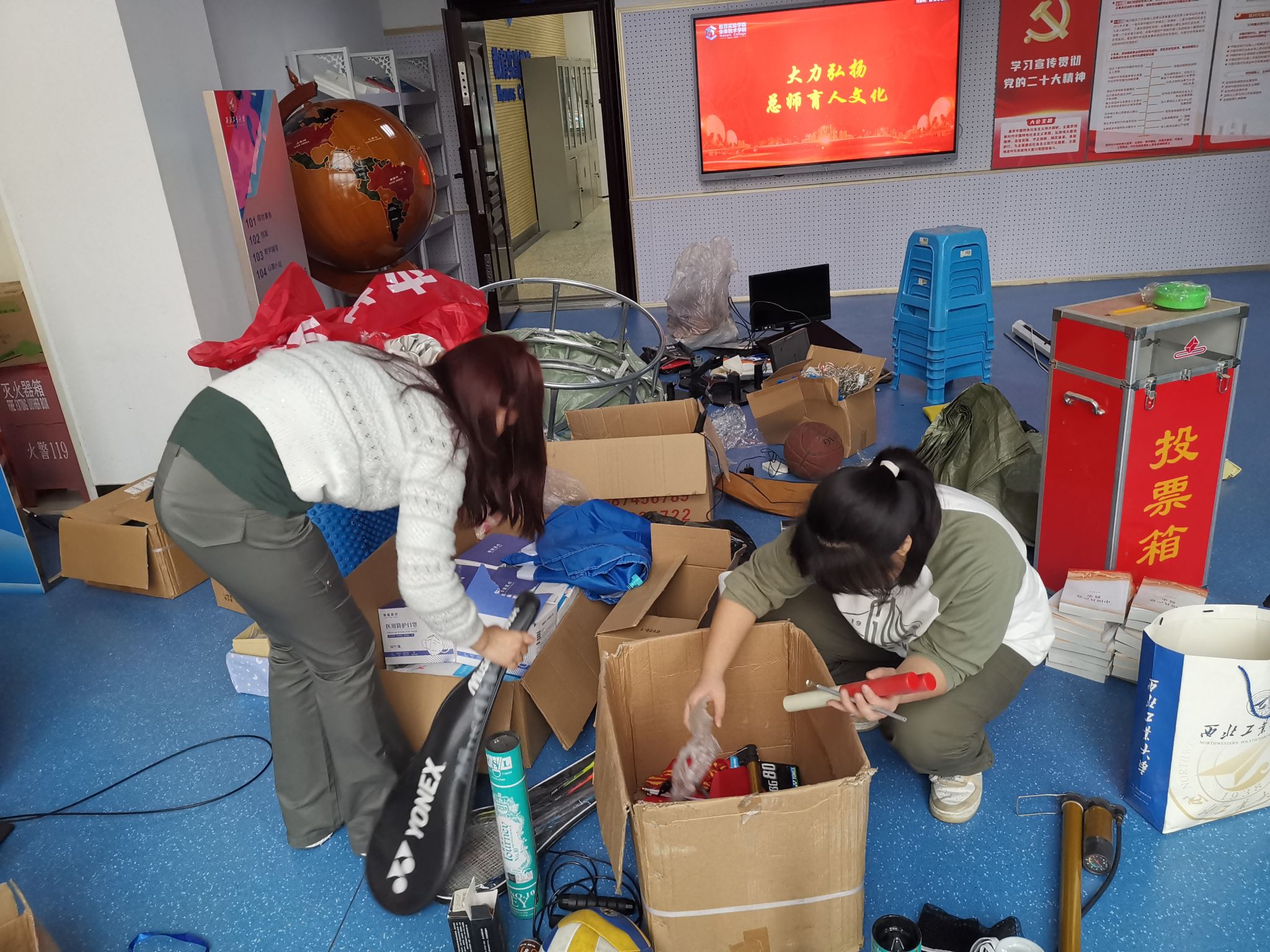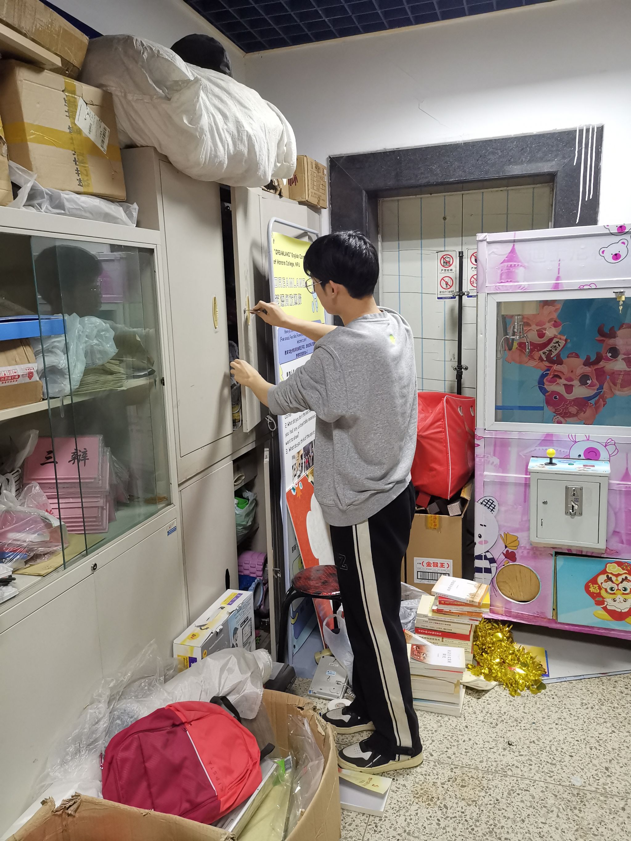 学生志愿者以饱满热情投入到了清扫和整理学院仓库的工作中。按照预先自行分配的任务,有序进行每一项工作:一部分志愿者负责收整杂乱的文件柜,另一部分志愿者致力于整理仓库内的物资,确保每件物品都放置的井井有条,还有志愿者专注于对仓库里的物品进行分类,并合理的回收或处理。