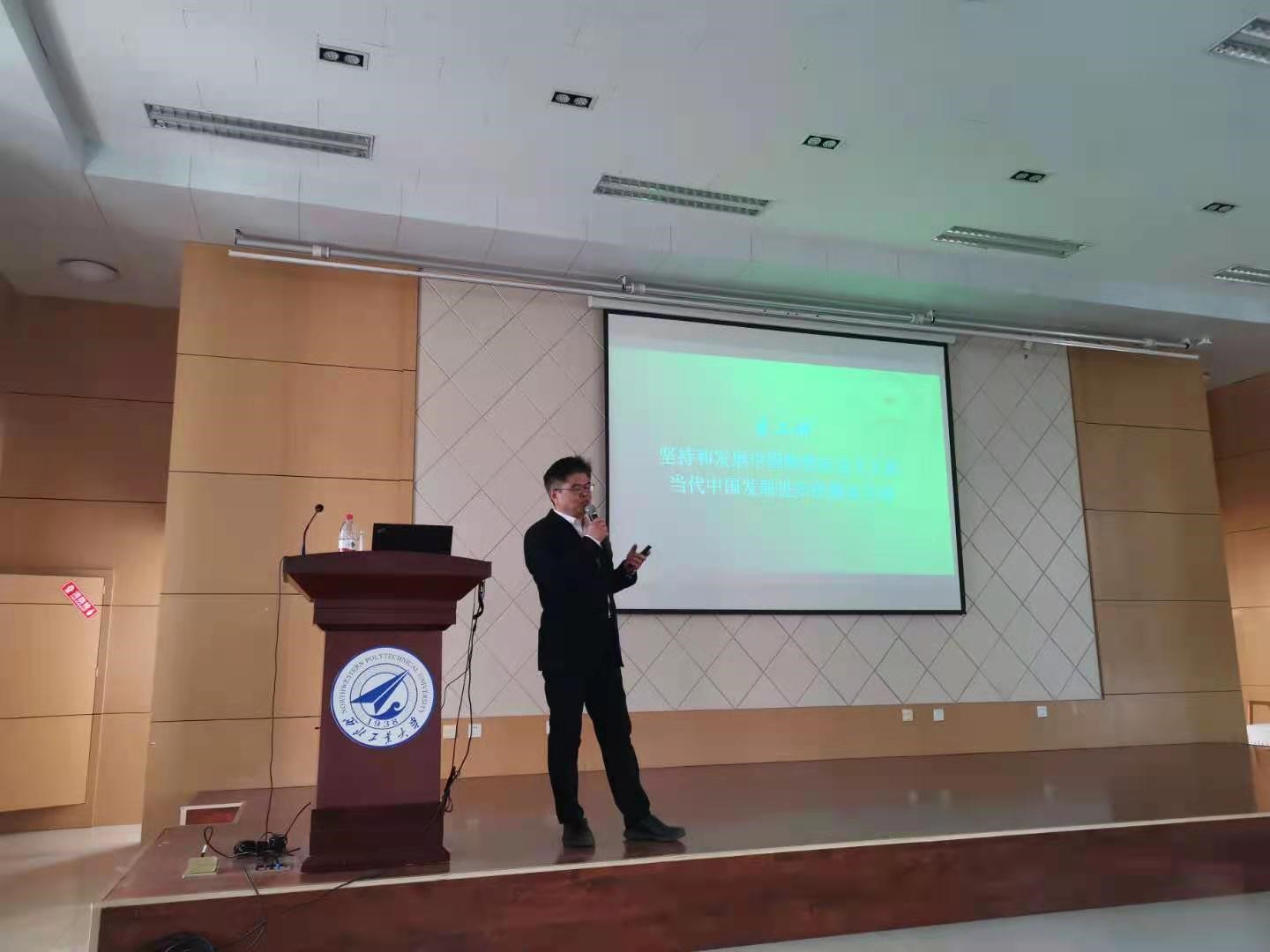 3月27日下午,校党委常委、党委宣传部部长杨晓以《坚持和发展中国特色社会主义是当代中国发展进步的根本方向》《领导力的概念介绍》为题,为bat365在线官网平台200余名学生讲授思政课。