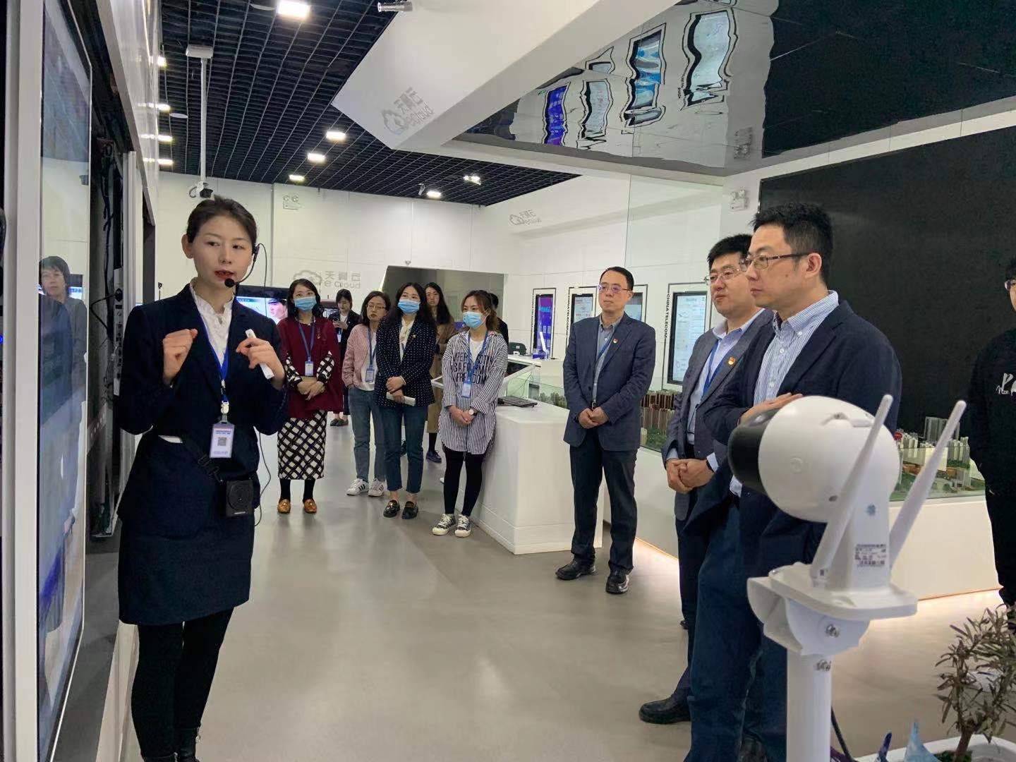 阳光明丽,清风送爽。本次活动的党员一行在中国电信工作人员带领下参观了基地主要机房和相关配套保护设施,了解到基地的设备概况及运行方式。随后,在陕西电信DICT科技信息体验馆中,党员同志们学习了中国电信在落实习近平总书记系列重要指示的工作举措,体验了中国电信的新设施。