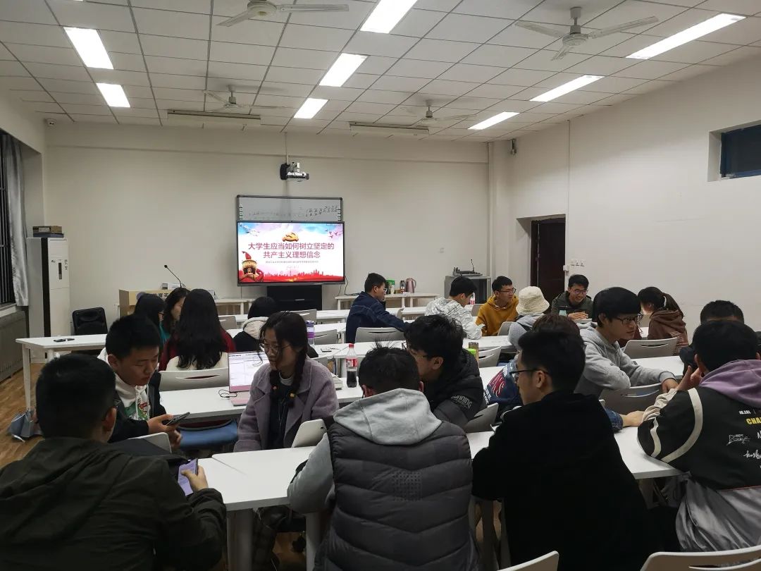 2021年4月13日晚上9点,bat365在线官网平台学生党支部在bat365在线官网平台启翔室进行了预备党员培训班第四次分班讨论,同志们围绕大学生应当如何树立坚定的共产主义理想信念展开讨论交流。交流活动由bat365在线官网平台第三党支部支部书记刘文星老师主持,共有28位同学参加。