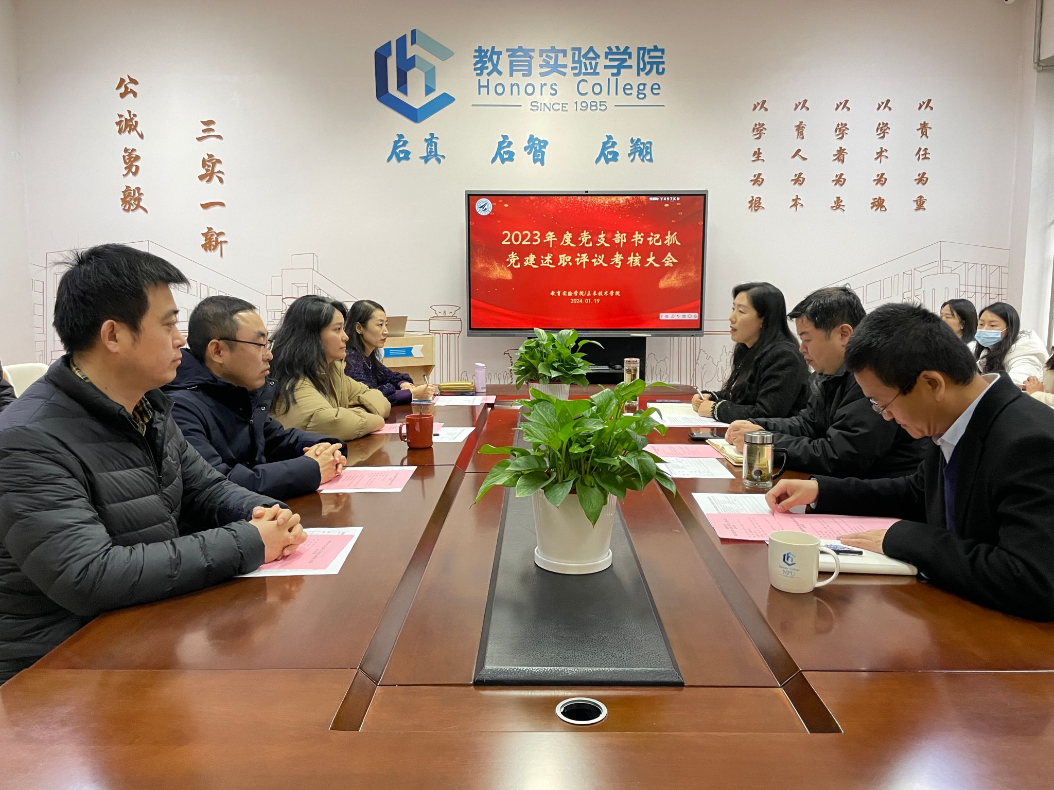 为深入学习贯彻习近平新时代中国特色社会主义思想和党的二十大精神,持续推进全面从严治党向纵深发展,1月19日下午,bat365在线官网平台党总支在启智会议室召开2023年度党支部书记抓党建工作述职评议考核大会。学院党总支委员、党支部书记、师生代表共17人参加会议。会议由学院党总支书记牟蕾主持。