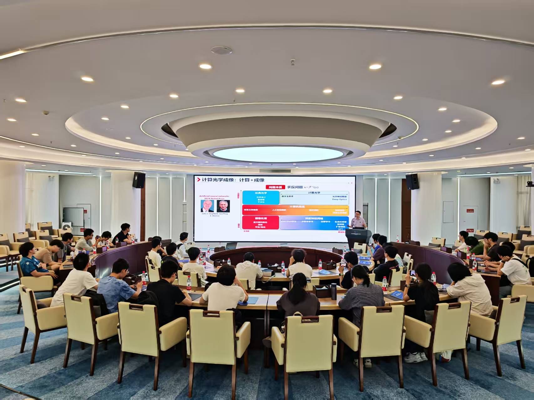 随后,西安光机所潘安副研究员为师生作了题为《计算光学成像》的专题学术报告。报告从传统光学成像的局限性切入,深入浅出地介绍了计算光学成像技术的原理、应用及发展趋势,并结合光机所在超分辨成像、光场成像等领域的研究案例,展示了该技术在医疗、航天、安防等领域的广阔前景。潘安副研究员结合自身科研经历,鼓励同学们以跨学科思维探索技术边界,为解决“卡脖子”问题贡献青年智慧。