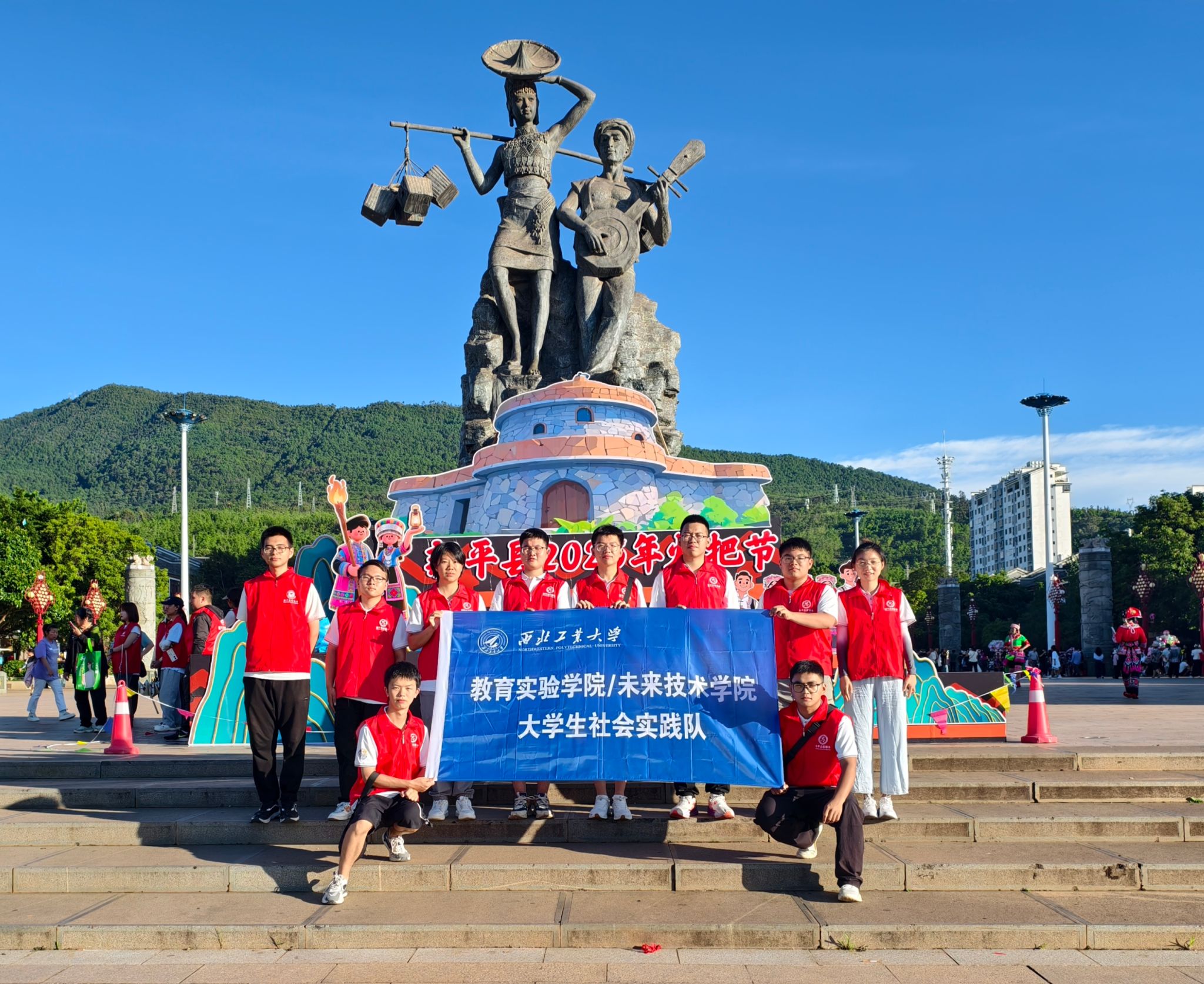 从社区到工厂,再到节日广场,新平用一幅幅鲜活场景昭示:乡村振兴不仅是经济跃升,更是文化赓续、情感联通与人心聚合。实践队的青年学子在此读懂了中国式现代化在边疆民族地区的生动注脚——火把一个,点亮万家;同心一炬,照彻未来。用青春助力乡村振兴,实践队在路上。