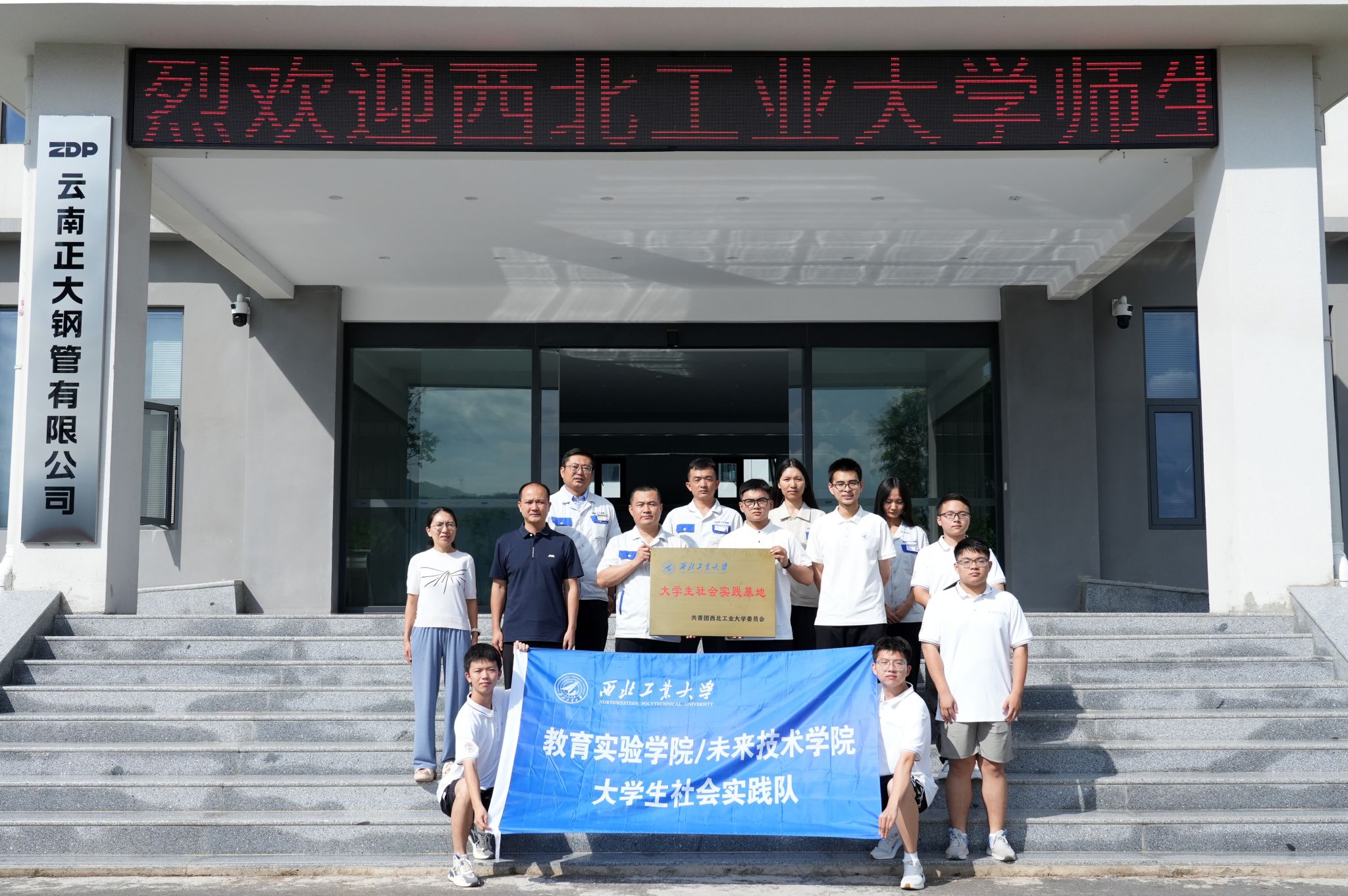 7月17日下午,实践队走进云南正大钢管有限公司开展调研。公司工会主席张永身向队员们介绍,企业仅用105天在废弃矿山上建成首批生产线,并投入使用,曾经的废弃矿场,如今已从大地的“疮疤”变为一座为人们带来财富与幸福的绿色工厂。通过座谈交流,队员们深入了解到企业专注高端钢管制造,聚焦东南亚市场,助力玉溪市“绿色钢城”建设的历程,切身感受到工业发展为新平县乡村振兴带来的新动能。队长吴国睿感慨到,“这次走访让我们既学习了企业发展经验,又见证了党建引领下的乡村振兴实践”。最后,实践队与公司共同为为社会实践基地挂牌,为下一步合作。