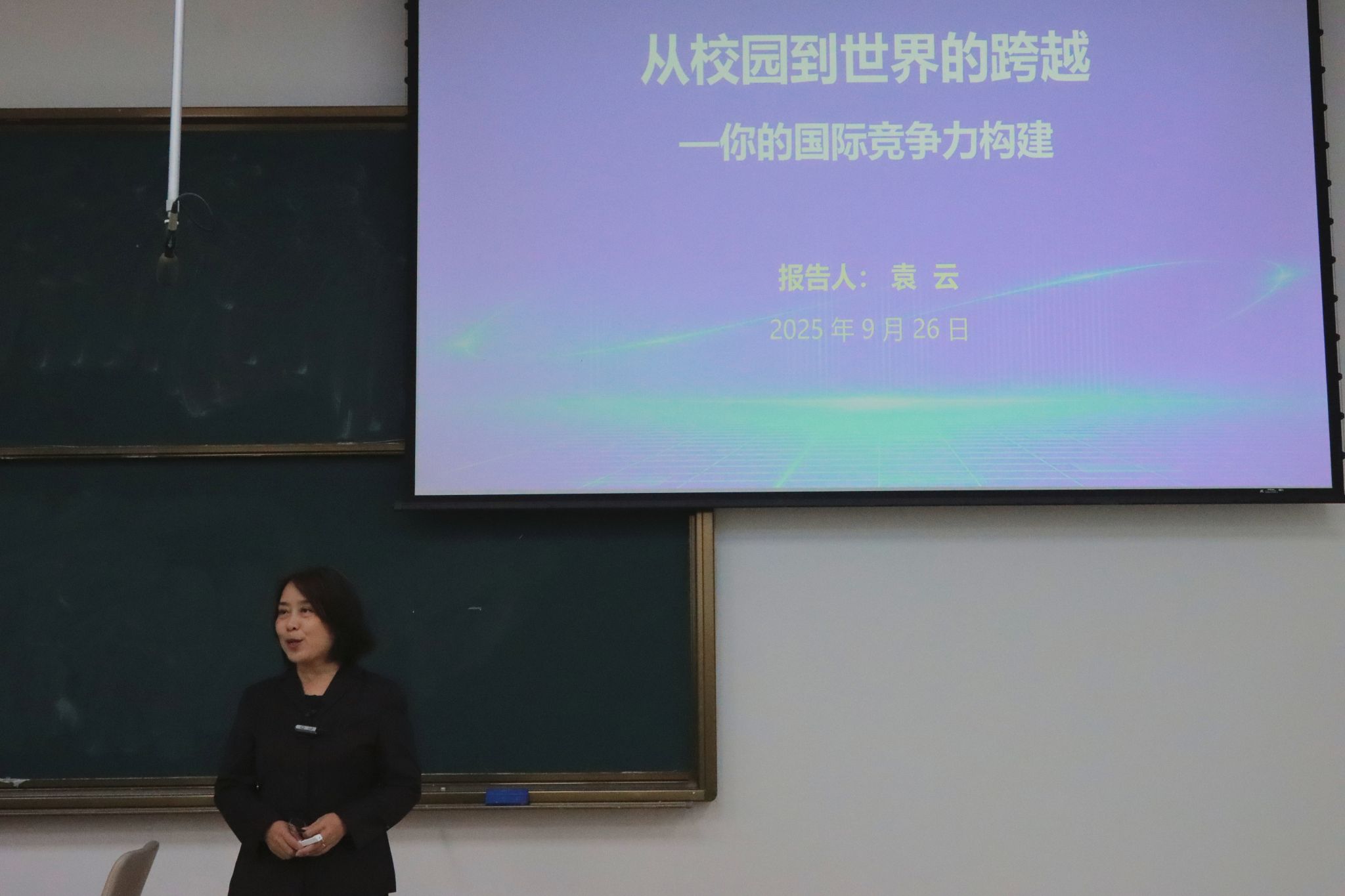 讲座中,袁云从“国际竞争力”“国际视野:国际竞争力的‘软’核心”及“如何拓展国际视野”三方面开展分享。首先,她通过剖析国际竞争力的“内核”,从群体发展需求与个体成长诉求双重视角,阐释了当代大学生具备国际竞争力的必要性与重要性。随后,她聚焦国际视野这一“软”核心,结合全球发展趋势与实际案例,解读国际视野对个人职业规划与长远发展的关键作用。最后,她结合学校“总师型”人才培养理念,与同学们共同探讨“如何通过拓展国际视野,成长为具有国际竞争力的新时代人才”。