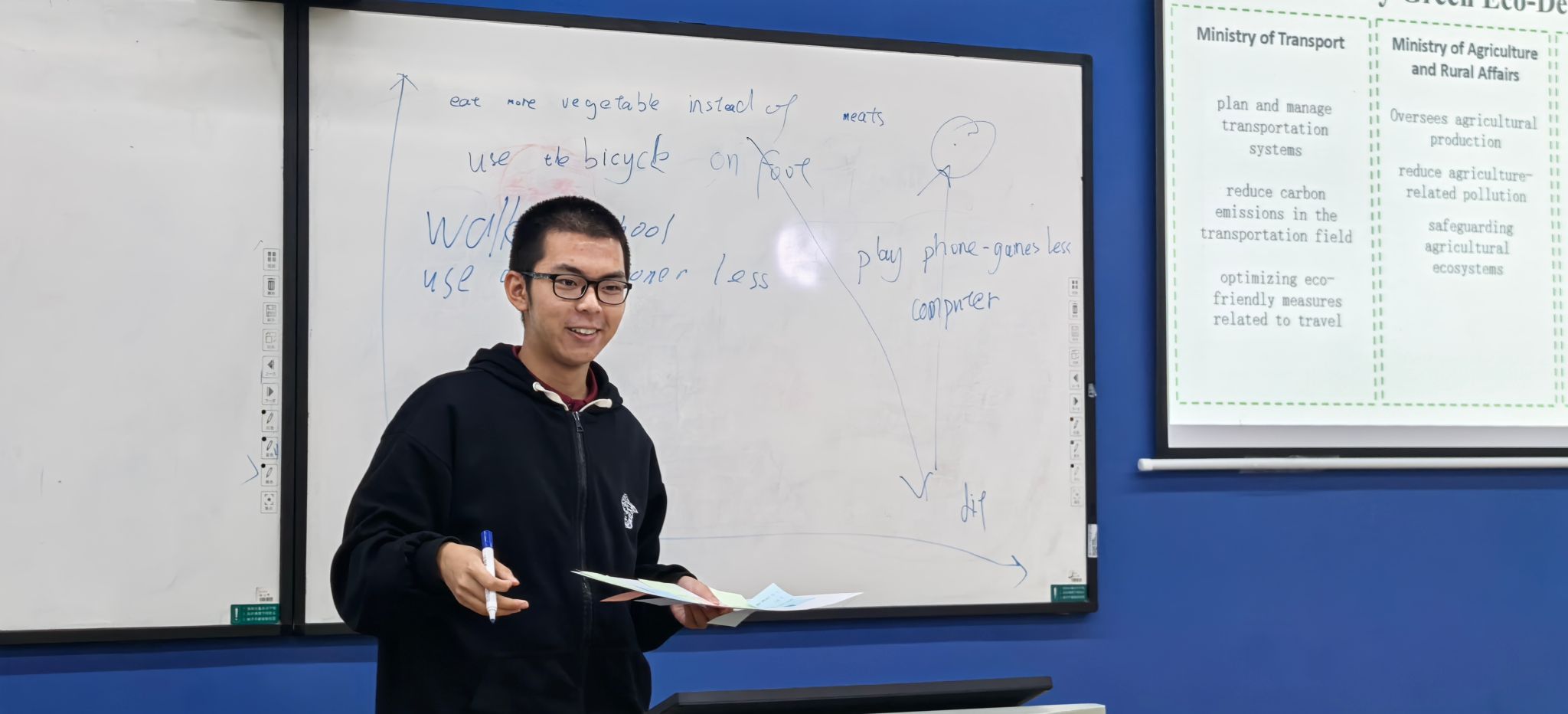 本期英语角以“生态”为切入点,围绕“个人碳排放与全球碳中和”展开,通过多元互动形式,让同学们在语言实践中深化对生态保护的认知。
