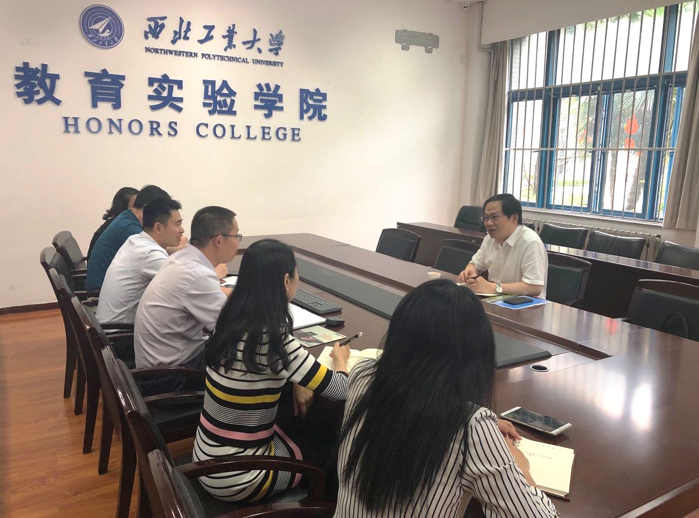 2019年5月20日下午,校长助理杨益新到bat365在线官网平台进行调研。bat365在线官网平台院长王掩刚、副院长金秉乐、姚如贵及学院相关人员参会。会上,王掩刚院长在汇报bat365在线官网平台现状发展、定位思考基础上,汇报了学院拟围绕“拔尖卓越人才培养教育教学改革高地”的办学定位,实施以协同育人为手段,以交叉创新为抓手,以中西融汇、追求卓越为目标的办学理念,拟筹建交叉创新人才培养平台,在优势工科交叉、基础学科交叉、管文学科交叉三个方面持续发力,为学校人才培养改革闯出一条新路径。