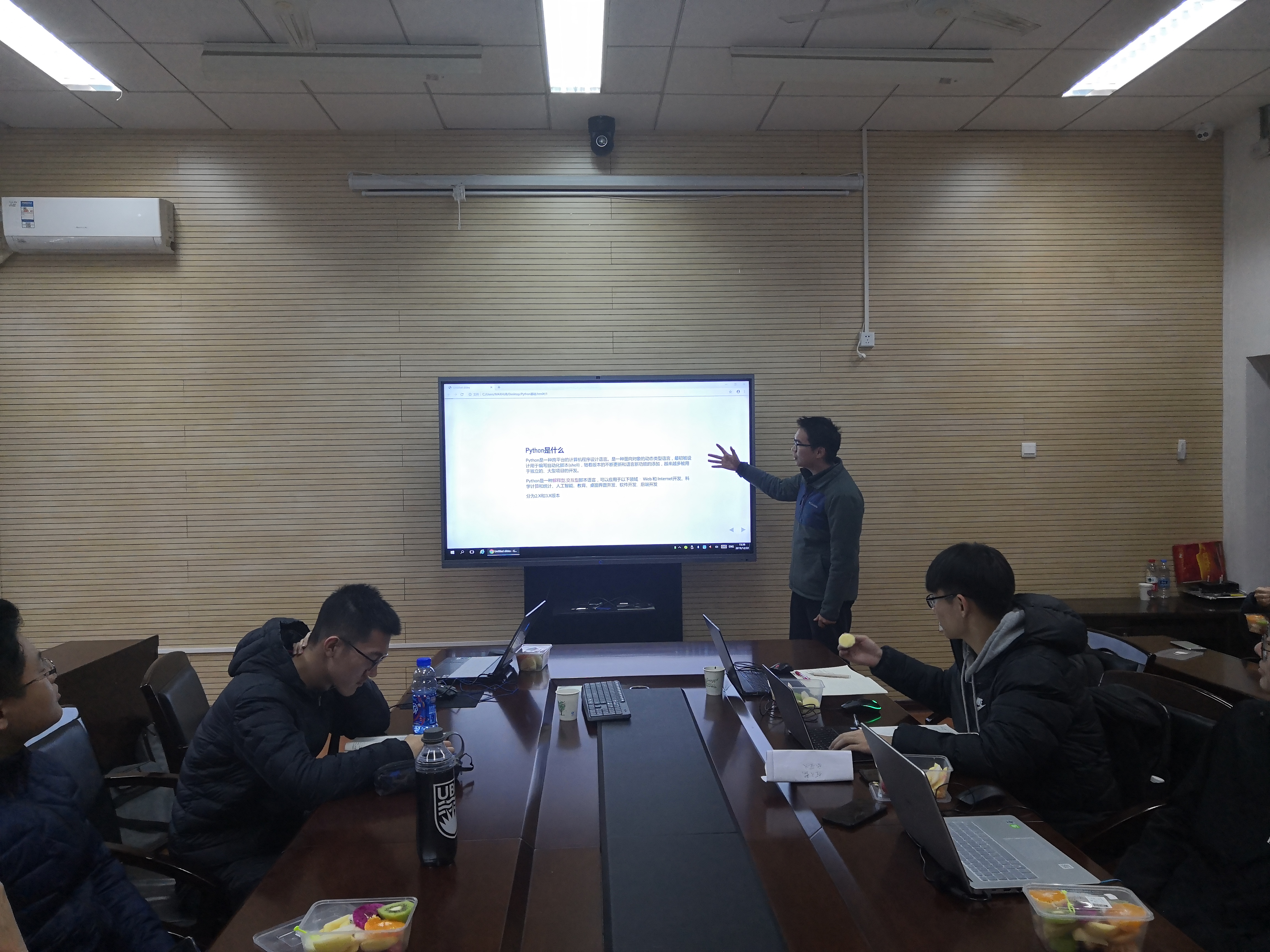 张源培同学以竞赛为主题展开分享,他从竞赛的意义切入,指出参加竞赛是对课堂知识的实践应用,可以增长多方面能力,对学业发展具有很大的促进作用。张培源重点向大家介绍了机器人比赛,数模竞赛等赛事的详细信息,包括参赛流程和所需加强的知识。最后,张学长结合自身加入新媒体和足球机器人基地的经历,鼓励大家要敢于尝试,善于发现自身潜力,永远保持努力的姿态。第二位发言的是18级的沈真同学,他向大家介绍了编程语言python的相关知识。通过ppt和沈真同学的讲述,大家了解了python这一计算机语言的特点和语法。沈真同学现场演示的“爬虫”程序进一步激发了同学们的兴趣,开阔了眼界。