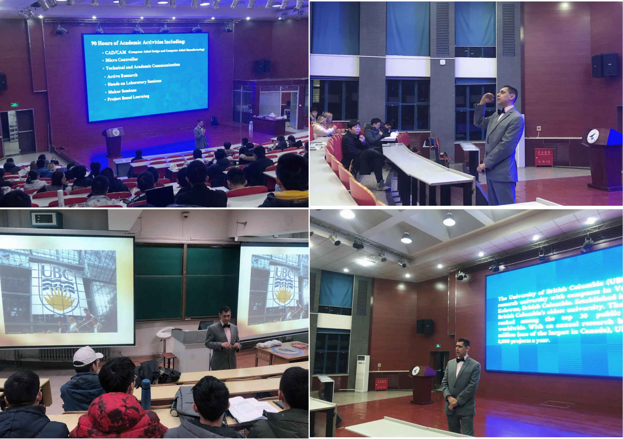 宣讲伊始,Ray-Taheri教授通过播放一段关于UBC的视频,为大家展示了多彩的校园风貌,详细介绍了暑期项目的内容、特色及优势。并就暑期项目录取要求、课程设置、生活情况以及未来发展机遇等方面进行了具体介绍。他表示,暑期项目着重实践环节,结合Solidwork、3Dprinting等专业技能的讲授,培养学生解决实际工程问题的能力,锻炼学生的创新与实践能力,为今后的学习打下良好基础。