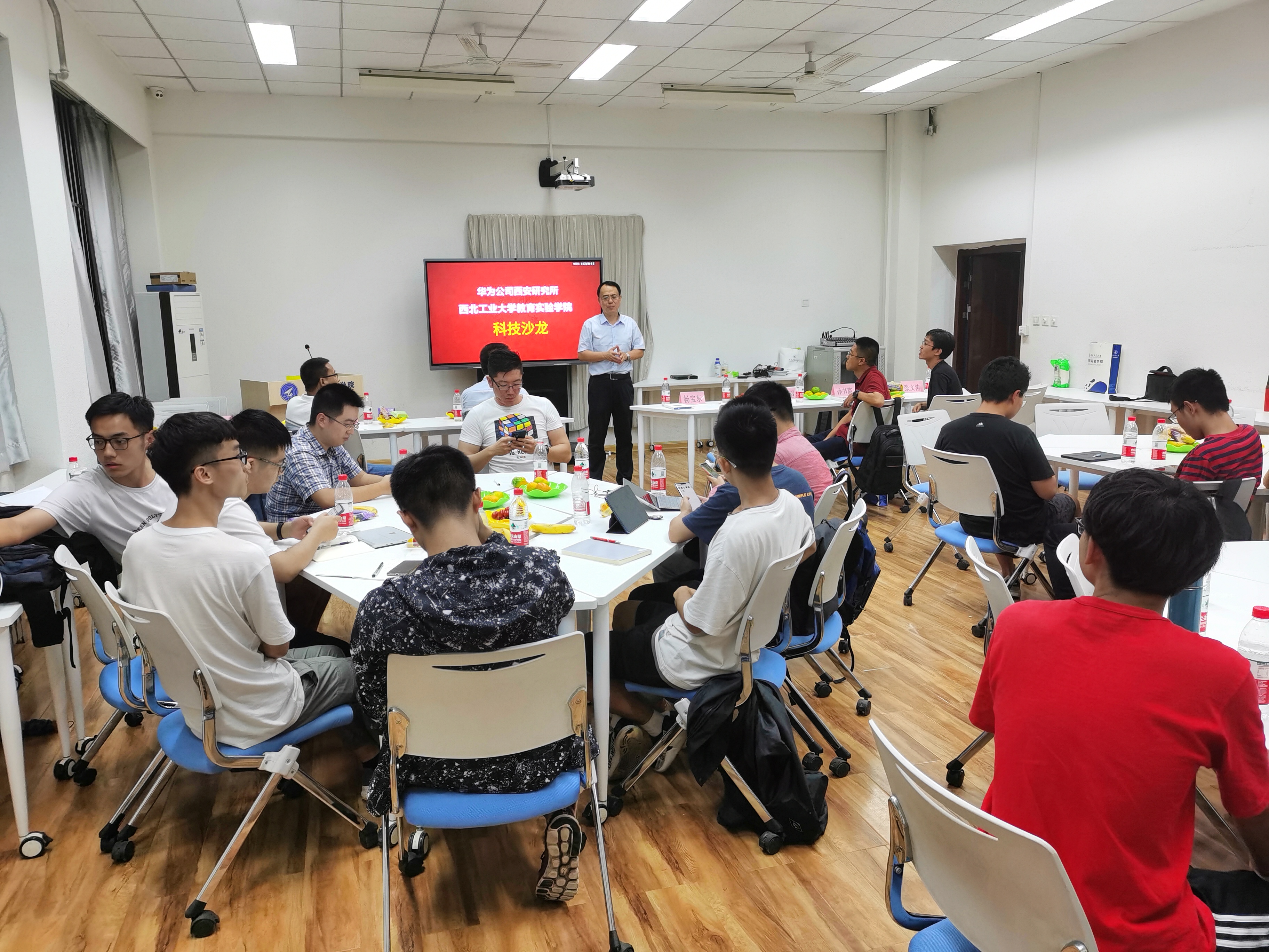 9月9日晚,bat365在线官网平台同华为公司西安研究所在长安校区教西C座106学术交流会议室联合举办科技沙龙。华为公司西安研究所人力资源部部长杨宝东、招聘专员孙书宸、消费者BG部专家侯伟龙、公共开发部专家阚超、服务研发管理部专家牛少波受邀参加。bat365在线官网平台院长王掩刚、2018级辅导员别晓峰、办公室秘书郭雅楠和22名学生参加了科技沙龙。沙龙由bat365在线官网平台党总支书记张文涛主持。