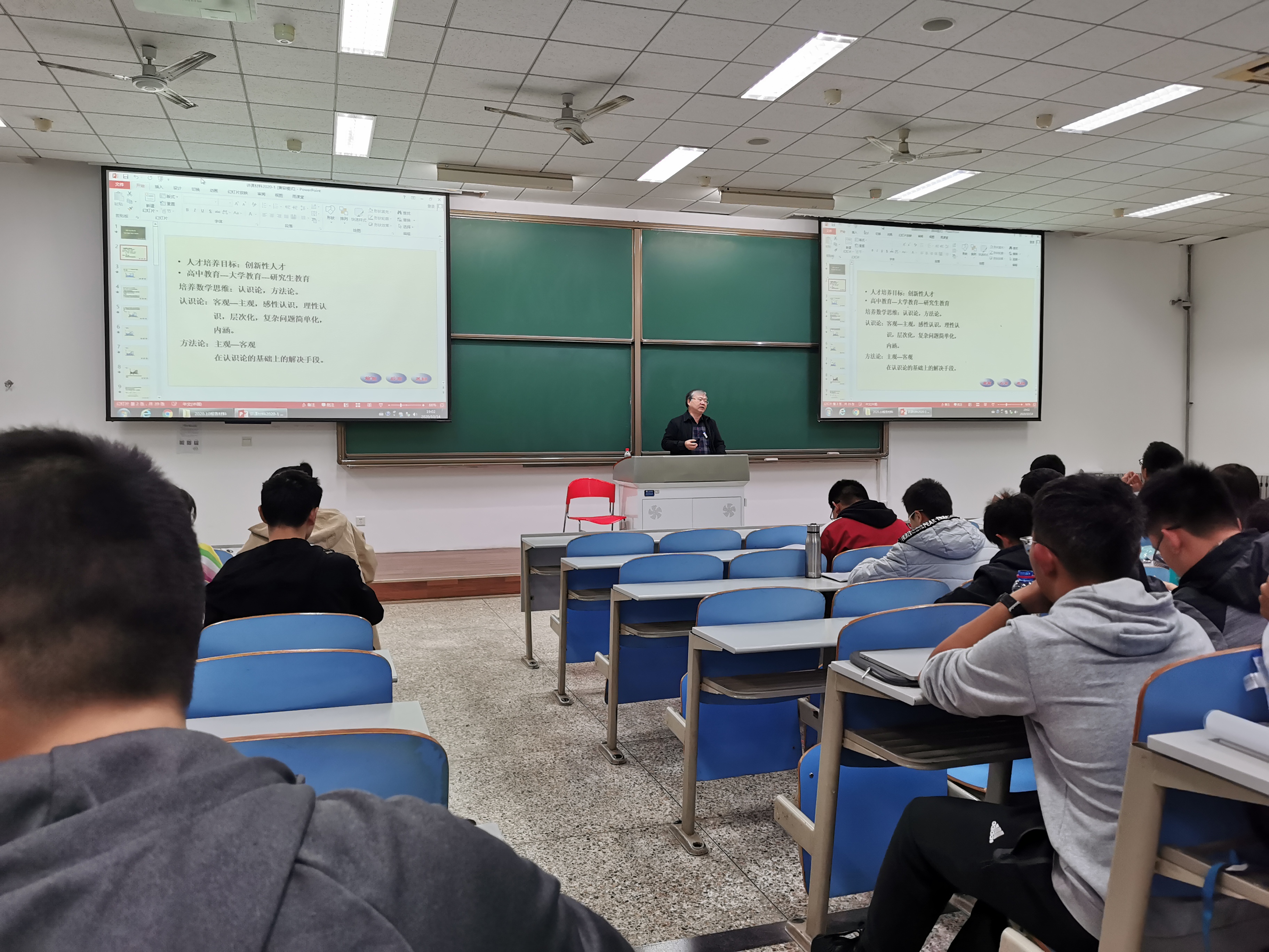 会议开始,彭国华老师亲切的问候语,再一次将同学们拉回了熟悉的数分课堂。彭老师从习近平总书记提出的“中国梦”开始,分析了当今时代形势,指出我们这一代人肩负着2035年基本实现社会主义现代化和2050年全面建成社会主义现代化强国的重大使命,立于时代的浪尖,我们应该把握机遇、勇于拼搏。通过对国家人才培养目标及人才战略方针的分析,引出了当下学生系统性思维培养的必要性。从思维的训练、理性思维的拉伸等方面,阐述了思维方法的重要性。