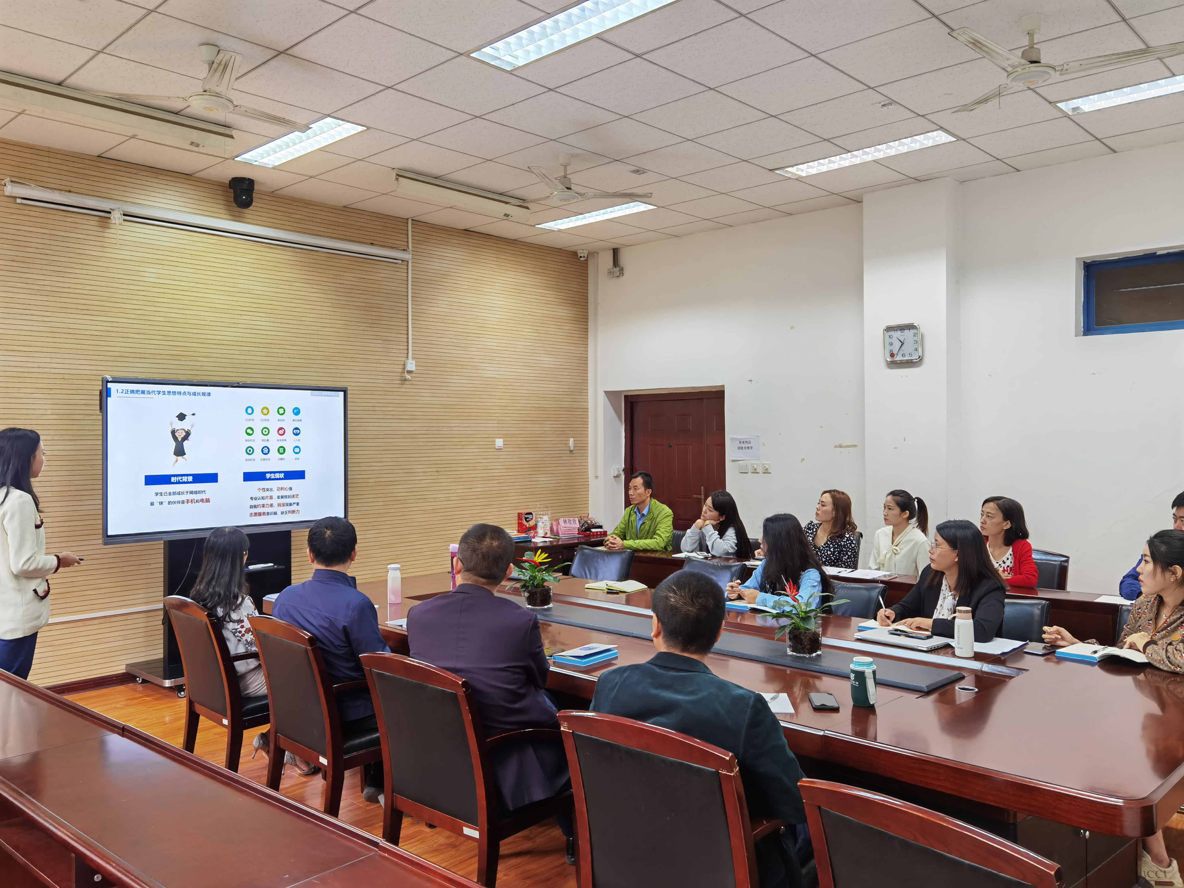 首先,学校2020年“本科生优秀辅导员”,bat365在线官网平台2019级辅导员黄芮老师作了题为《坚持问题导向,培育拔尖人才》的报告。黄芮老师从bat365在线官网平台2019级本科生的思想行为特点和问题入手,结合个人工作及研究开展情况,分享思政工作的研究成果,介绍工作经验与思政育人思考,得到了与会老师的强烈共鸣,引发了老师们的深刻思考和热烈讨论。
