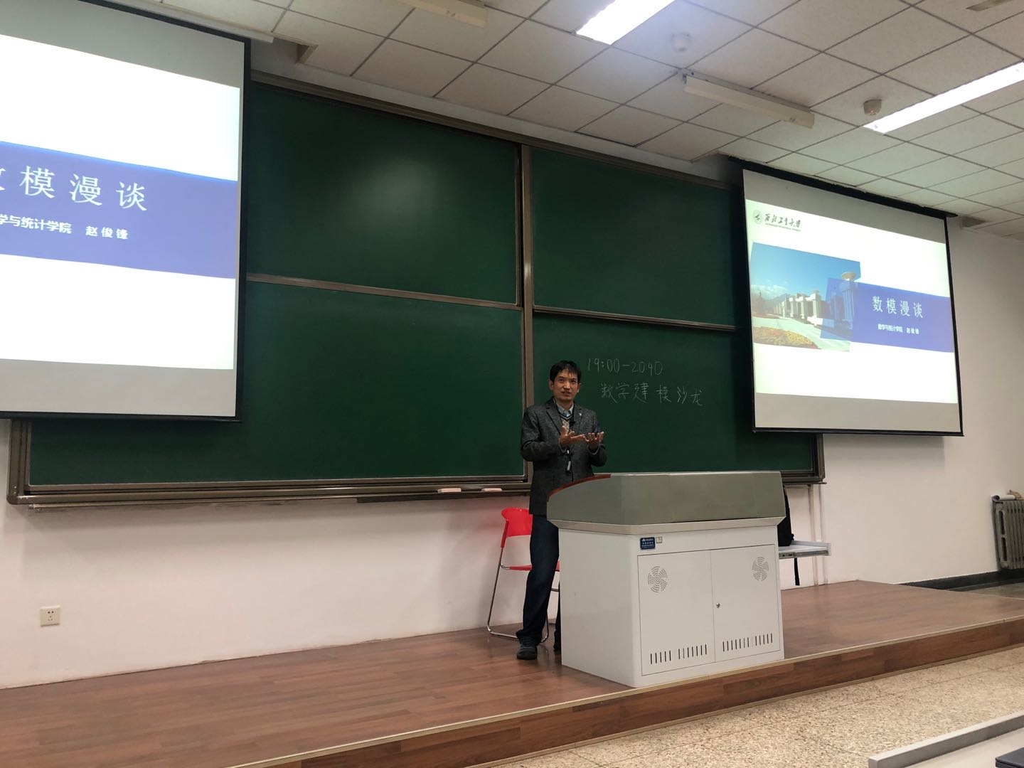 2020年11月4日晚,bat365在线官网平台在教西D206举办“启真沙龙——数模漫谈”。本次沙龙邀请了bat365在线官网平台数模基地负责人赵俊锋老师,bat365在线官网平台140余名本科生参加了本次沙龙。沙龙由bat365在线官网平台教学秘书宁豆豆主持,bat365在线官网平台副院长蔡力出席本次沙龙。