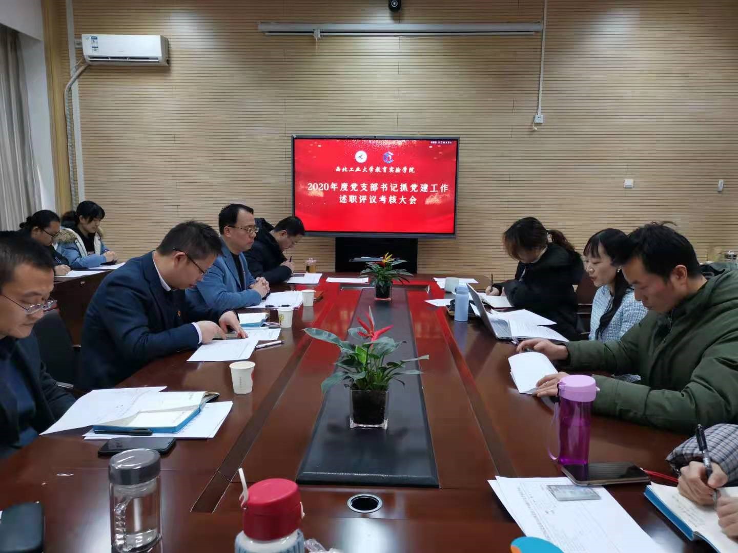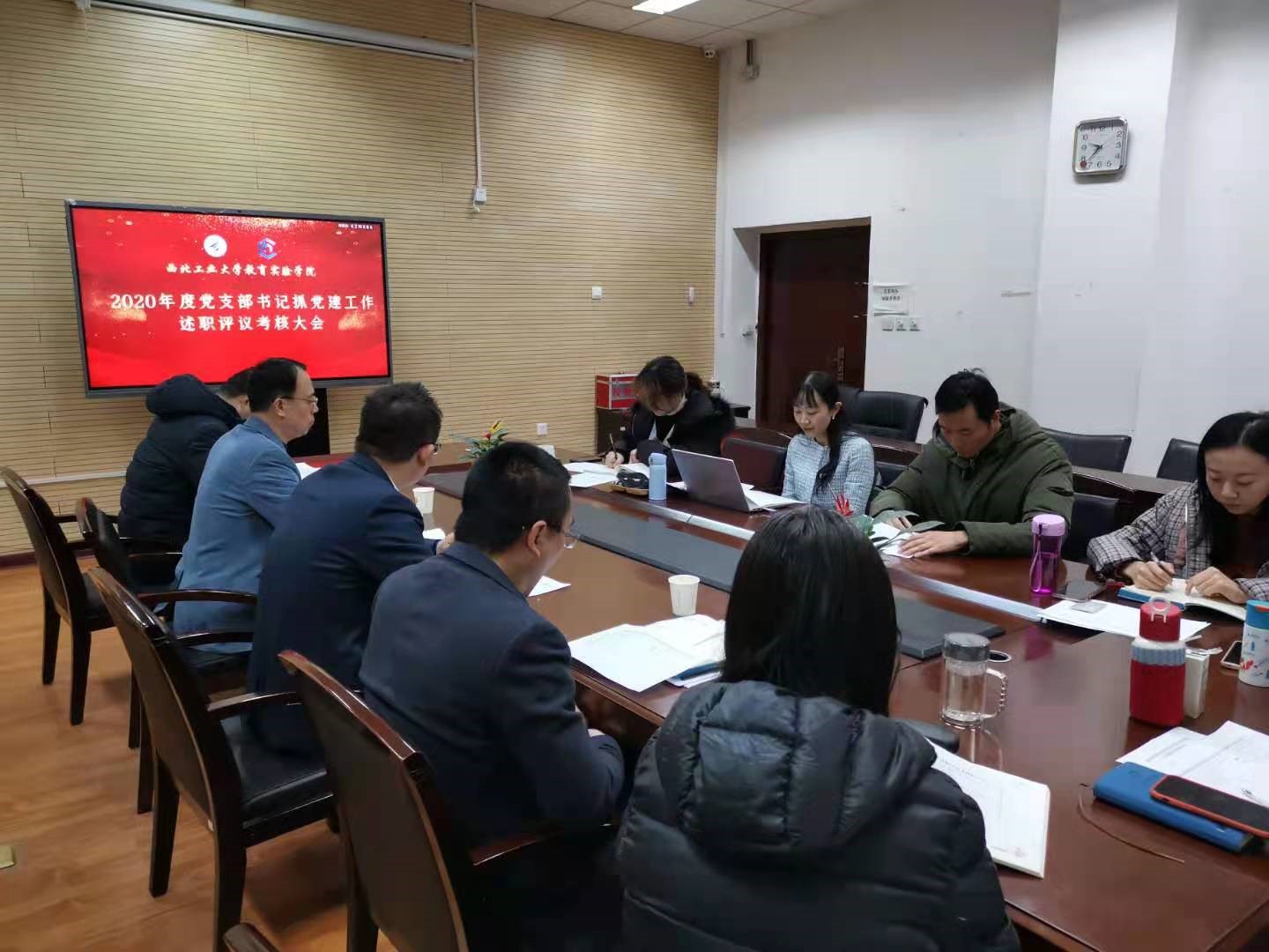 12月31日,bat365在线官网平台党总支根据党委组织部《关于开展2020年度党支部书记抓党建工作述职评议考核的通知》的相关要求,在长安校区107会议室召开了学院2020年度党支部书记抓党建工作述职评议考核大会,会议由党总支书记张文涛主持,党总支领导班子成员及部分师生代表参加了会议。