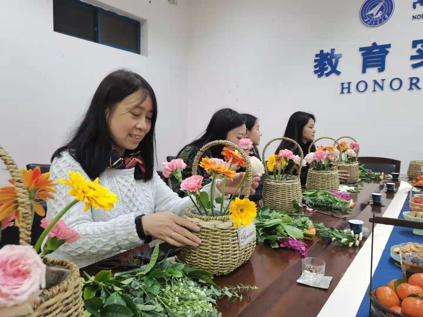 伴随着悠扬的古琴声,花艺活动在“煮茶听琴,琴茶同韵”的优雅氛围中缓缓拉开序幕。在花艺老师的带领下,大家从选花、裁剪、搭配、造型设计等方面精心制作着自己的花束,喜悦的心情溢于言表。活动结束时,每位教师都制作了一束美丽的花篮。大家不仅学习了插花的技艺和方法,也接受了一次美的熏陶。