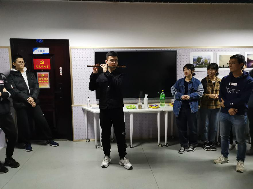 bat365在线官网平台2020级张景润同学即兴为大家用笛子演奏了“荷塘月色”,并用英语介绍了乐曲的风格和意境。 悠扬的笛子乐声久久萦绕在学院楼的大厅里,也让参加英语角的师生们感受到了音乐之美。张文涛老师随后作了点评,音乐和英语一样,都是一种语言,架起了人和人沟通的桥梁,联通人心。相信同学们在学习英语的同时,也能更多享受学习的乐趣。