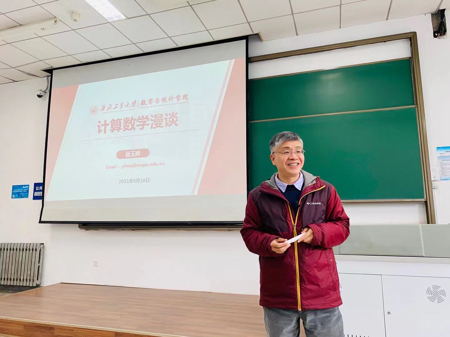 讲座开始之前,蔡力副院长简要介绍了聂玉峰教授的学术经历和科研成果,并对聂玉峰教授的到来表示热烈欢迎。讲座过程中,聂玉峰教授首先介绍了数学与计算数学学科、我校数学与统计学院的历史沿革;随后,聂玉峰教授结合自身科研方向,重点介绍了计算数学的概念、发展历史及计算数学研究主题与科学技术的联系。最后,聂玉峰教授鼓励同学们将个人发展与国家重大需求结合,求学过程中勤于思考、追本溯源,提升多角度分析和解决问题能力。