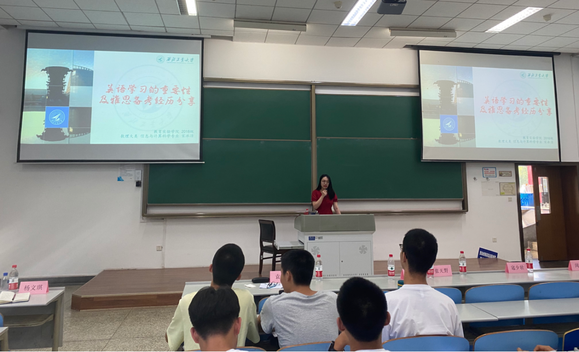 宋冰洁同学分别就英语学习的重要性、如何备考雅思和自身参与国际化活动的经历等三方面进行了分享。她用自己的亲身体会诙谐幽默地介绍了学好英语和专业基础课程的重要性,希望同学们能够少走自己走过的弯路,努力学习英语和相关专业课程,并鼓励同学们充分了解和利用学校和学院提供的优质资源,在多姿多彩的大学生活中留下更多珍贵记忆,不虚此行,不负韶华。