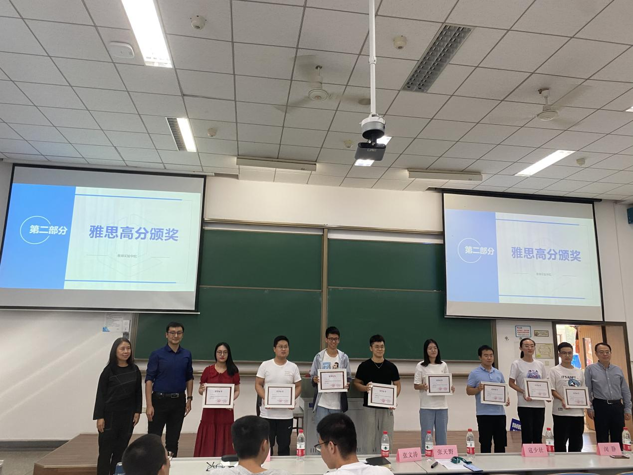 之后举行了雅思高分学生颁奖仪式,新东方代表和学院领导共同为学生颁发证书,祝贺同学们取得优异成绩。这些学生均是今年参加新东方-bat365在线官网平台首期雅思培训班,并首批参加考试的学员。