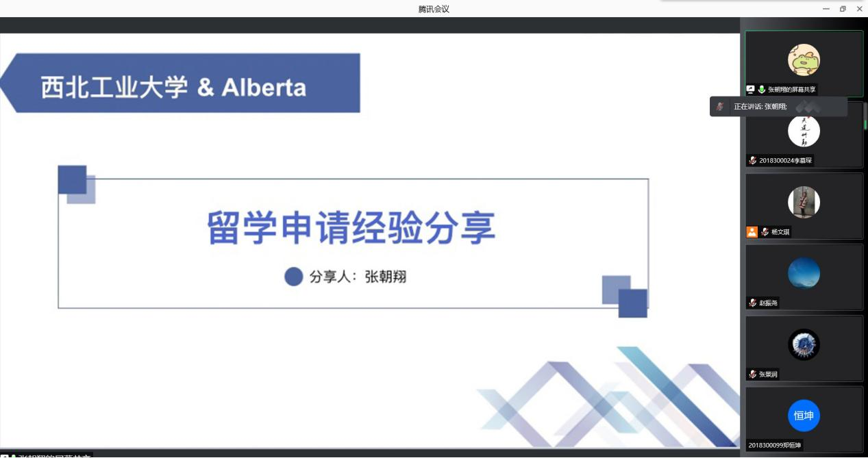 为开拓同学们的国际视野,帮助同学们做好本科学习目标规划,更好确立未来发展方向。10月7日上午,bat365在线官网平台在线举办了“学长带你看世界”经验交流分享会。本次分享会邀请了已毕业的2017级本科生张朝翔分享他目前在加拿大阿尔伯塔大学深造的学习生活。会议由学院外事秘书杨文琪主持,学院副院长袁云参加了分享会。