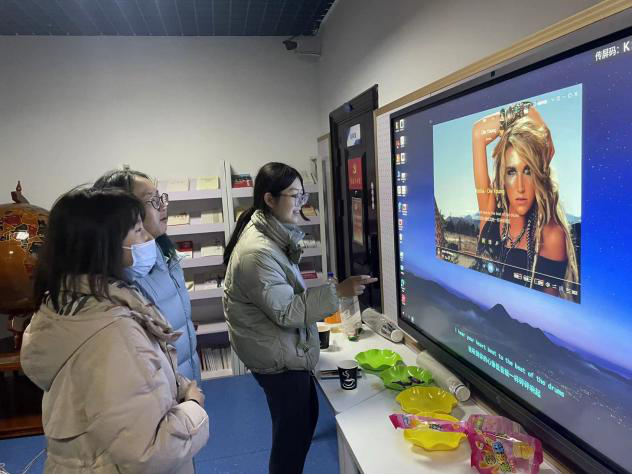 之后,大家进入了游戏环节,同学们点开屏幕唱起了悦耳的英文歌。刘润楷同学组织大家进行了英语游戏,新颖的方式增加了游戏趣味,同学们纷纷积极参与。