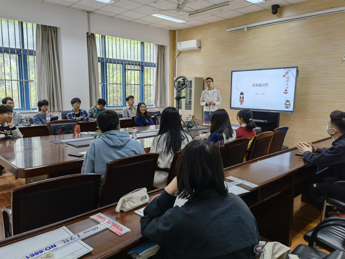 首先由日语老师梁钰轩为同学们讲解了日语学习的入门知识。梁老师以同学们感兴趣的日本动漫为话题引入了一段日语开场白,极大地吸引了同学们的注意。紧接着,他科普了日语的组成及五十音图概念,使同学们初步地了解日语语言结构和学习技巧。他通过讲述自己留学日本和工作的经历,介绍了日语的普及性及实用性,给同学们带来了新鲜而有趣的收获。