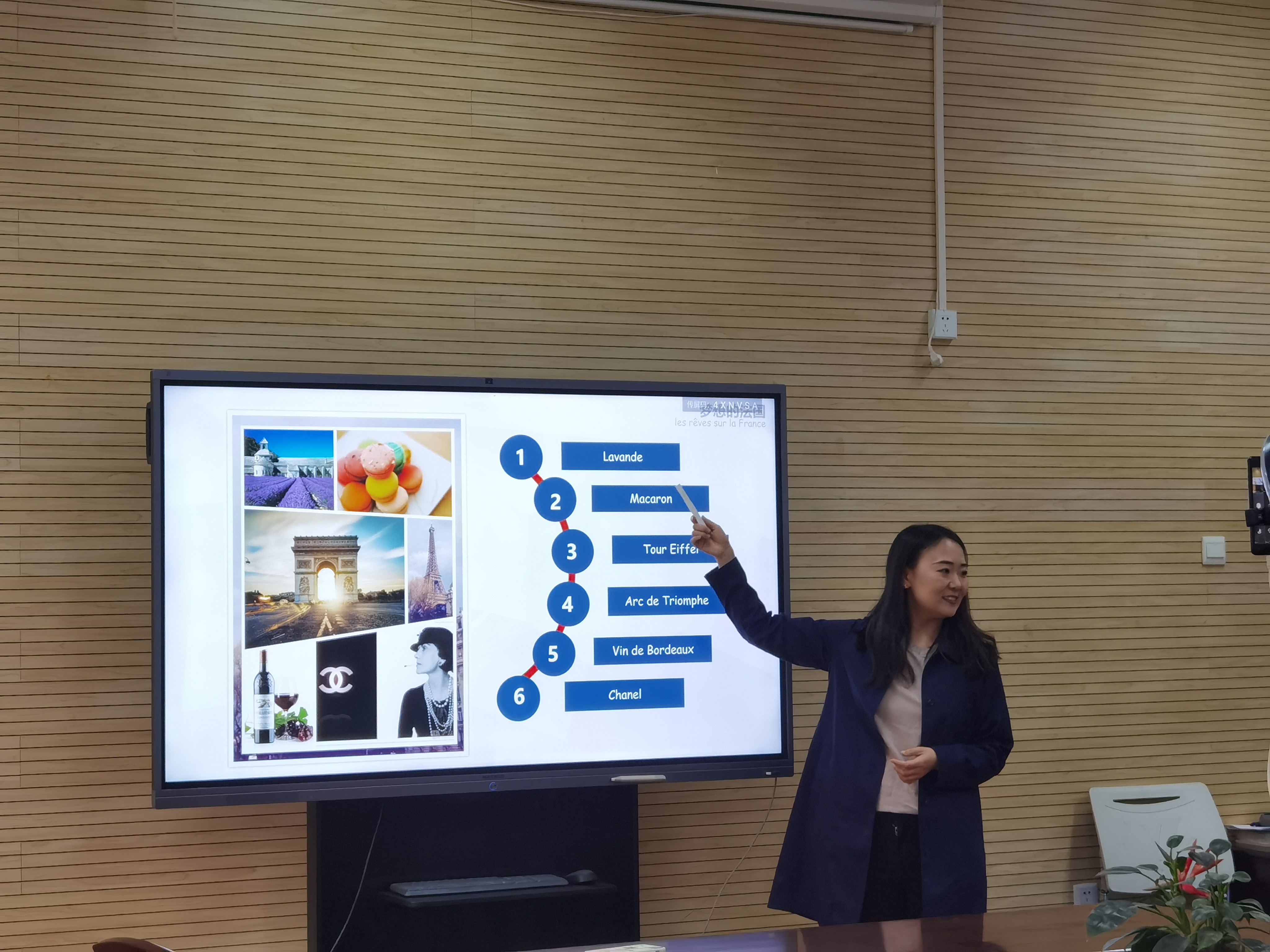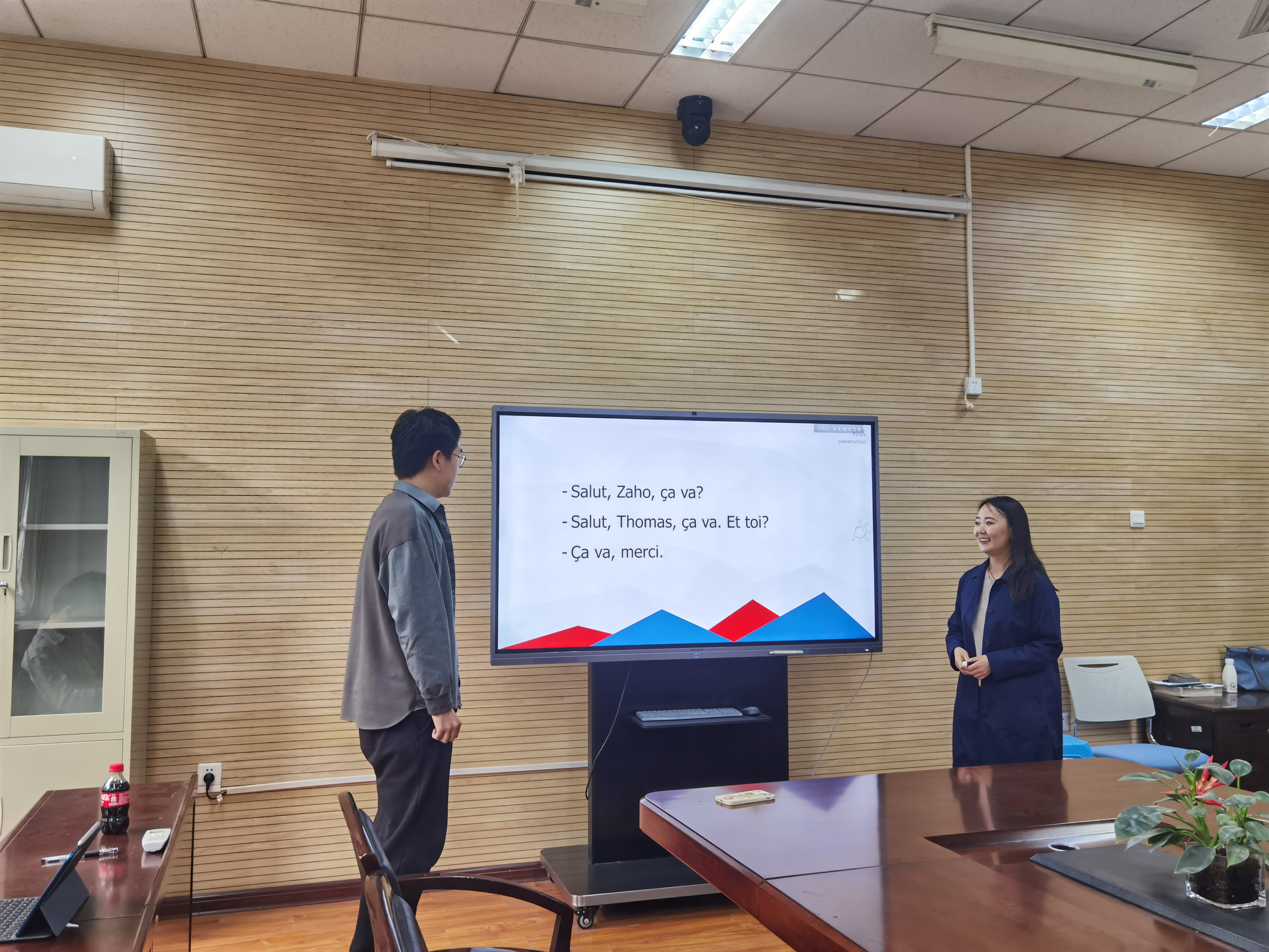 接下来,具有10年法语教学经验的赵馨楠老师为同学们介绍了欧洲语言的学习框架。然后她以一段优美的法语进行了自我介绍。在讲解过程中,她结合法国的社交礼仪、时尚、历史、风景等文化内涵,生动地讲述了法语发音由来和技巧;通过与英语、西班牙语和德语的语言对比,帮助同学们更深入的理解法语的独特性。最后,两位老师与同学们进行了自由交流,讲解了法国社交礼仪“贴面礼”知识,并进行了有趣的互动,同学们在学习中体会到学习小语种的乐趣。
