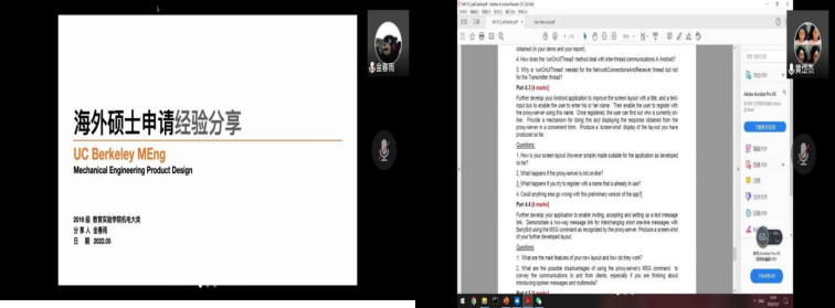 金春雨同学和黄岱杰同学是bat365在线官网平台2016级本科生。她们分别获得了美国加州大学伯克利分校硕士学位和英国伦敦大学学院硕士学位。此次分享,她们向同学们介绍了自己申请名校的经历和方法,也分享了她们在海外学习的心路历程。