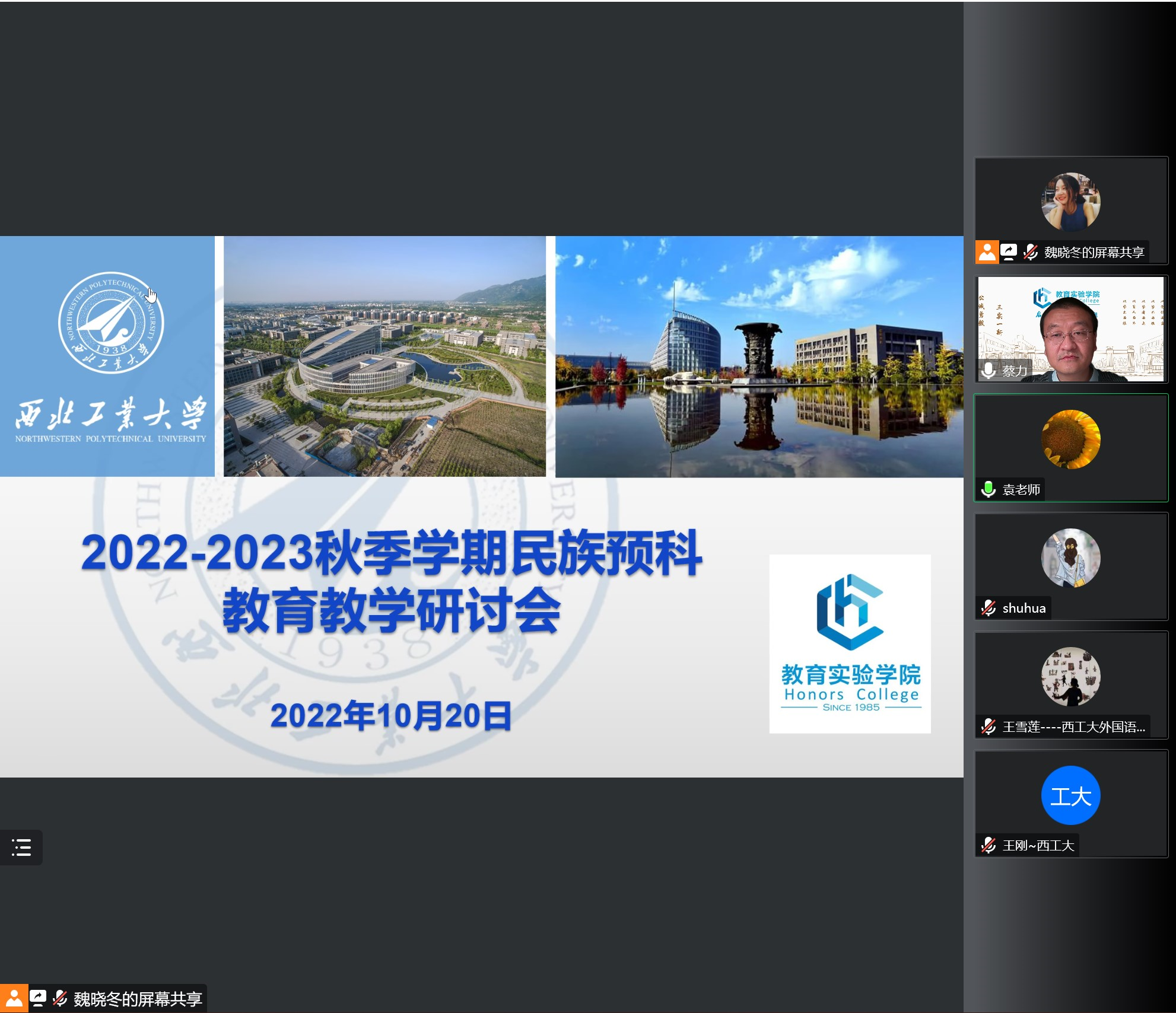2022年10月20日晚,bat365在线官网平台在线召开了2022-2023年秋季学期少数民族预科生教育教学研讨会。任课教师高宝营、王雪莲、詹涛、彭琼、张淑华、潘冀春、王刚、袁占斌等应邀出席并依次发言,与学院副院长蔡力、2022级少数民族预科生辅导员沙木哈尔·阿依夏古丽、班主任陈喜娟以及预科教学秘书魏晓冬等交流少数民族预科生教育教学方面的经验。
