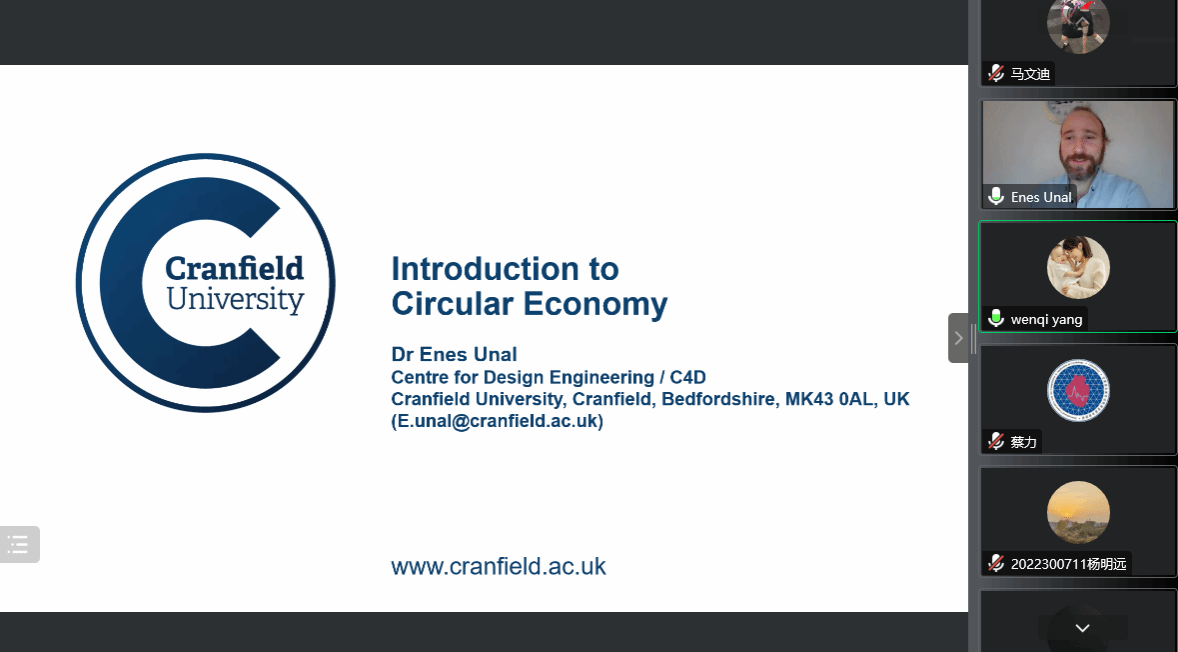 2022年11月19日下午,bat365在线官网平台在线举办“科技前沿,点亮双碳”系列讲座。本次讲座邀请了英国克兰菲尔德大学Enes Unal老师担任主讲教师,主题为循环经济与企业管理。bat365在线官网平台副院长蔡力、外事秘书杨文琪、碳中和智慧能源创新班同学等师生参与本次讲座。