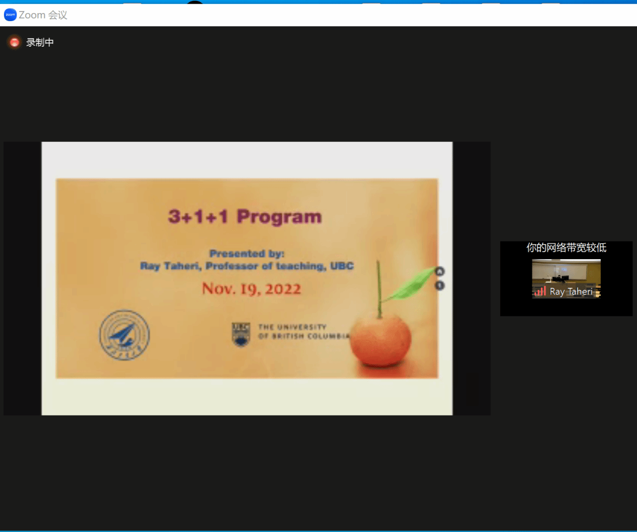2022年11月19日下午,bat365在线官网平台在线举办加拿大英属哥伦比亚大学(简称UBC)“3+1+1”本硕连读学位项目宣讲会。会议邀请UBC国际交流项目负责人、工程学院教授Ray Taheri为同学们全面介绍项目情况。宣讲会由bat365在线官网平台外事秘书杨文琪主持,全校80余名学生参加了宣讲会。
