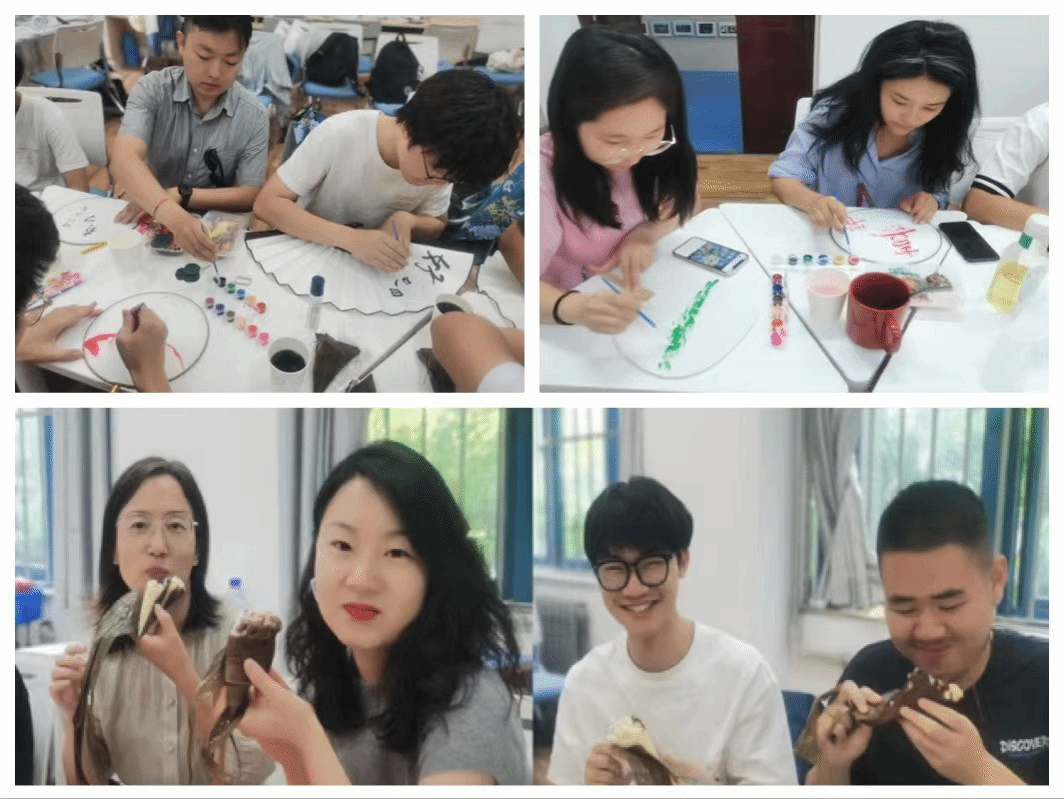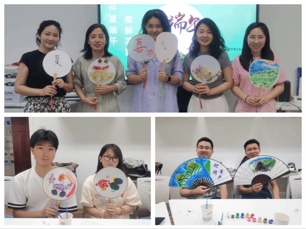 品尝粽子、欣赏音乐,活动在轻松愉悦的环境中进行着。干花团扇、绘画团扇、山水折扇、诗文折扇,师生创意满满,将美好之物都融入其中,每个作品都蕴含着美好的寓意。