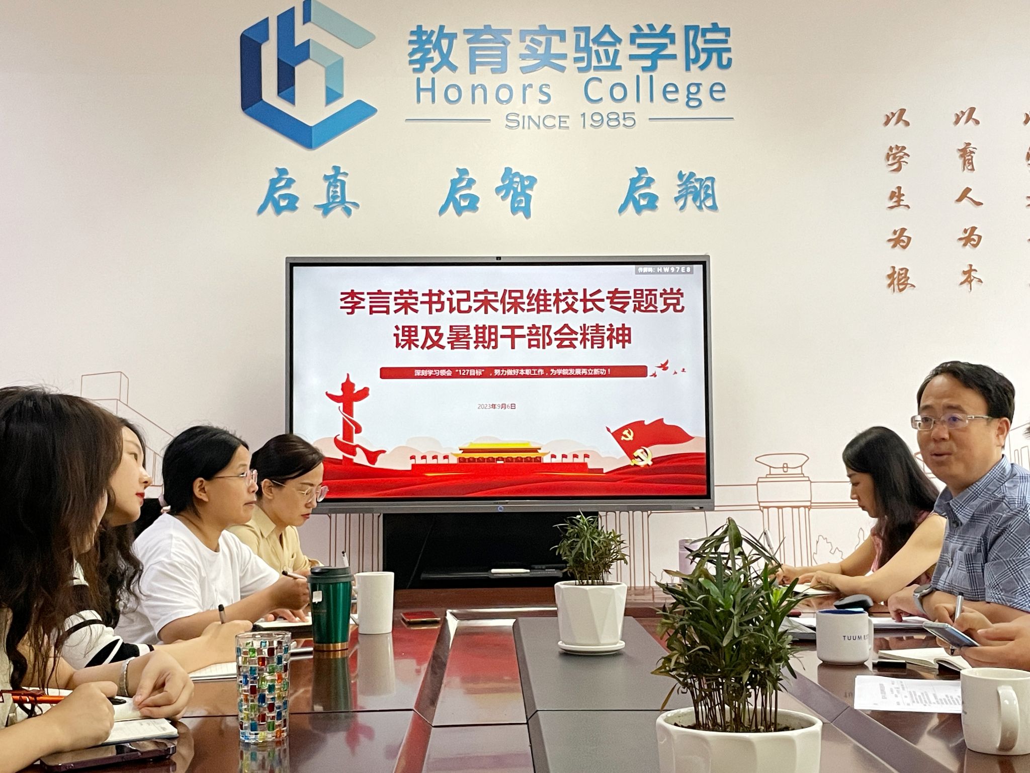 首先,张文涛在会上传达学习了学校2023年暑期工作研讨会暨新学期干部大会精神,同时结合会议精神带领全员重温了李言荣书记和宋保维校长分别于5月25日和7月14日讲授的专题党课内容。他指出学院要对照学校“127”目标和措施,主动寻找差距,主动改革创新,不怕困难,努力完成bat365在线官网平台/未来技术学院的发展建设任务。