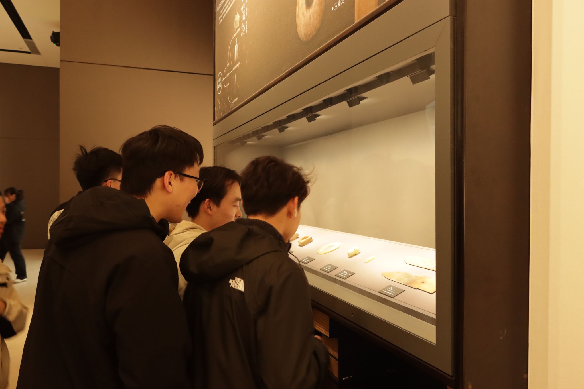 在讲解员的带领下,师生们依次参观了“考古历程”“文化谱系”“考古发现”“文保科技”四大主题展厅。观摩了从史前文明到周秦汉唐的珍贵文物,重点聚焦考古发掘中展现的古代科技智慧与工匠精神。当看着精美珍贵的青铜器、玉器、陶器等文物时,同学们由衷赞美中华文明的悠久历史与璀璨文化,一边感叹古人在技艺、艺术等领域的卓越成就,一边感叹新时代科技发展对文化遗产的保护和传承意义。文物无声,却诉说着千年的匠心与智慧,我们参观历史文物不仅仅是回溯历史,更是要从中汲取文化传承和科技创新的精神力量。作为工大学子,我们既要尊崇热爱中华文明,把中华优秀传统文化一代代传下去,也要赓续“为国铸剑”的工大精神,将个人理想融入强国建设,以科技报国之心勇攀高峰。