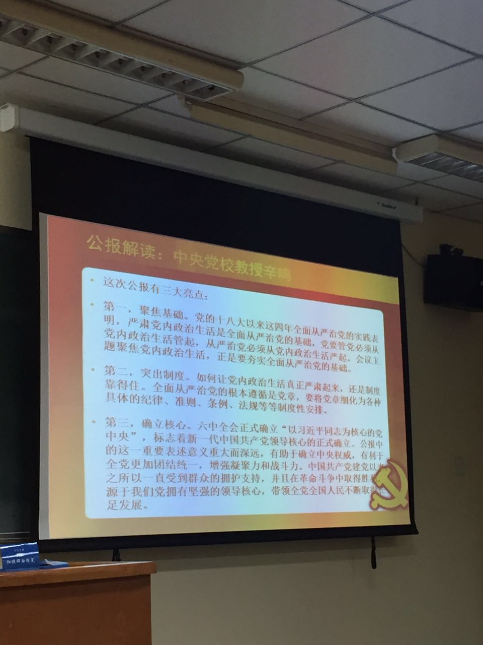 为促进党团员进一步学习党团知识,保持党员团员先进性,加强大学生思想政治教育,在党的十八届六中全会顺利召开,以及长征胜利80周年之际,beat365手机版官网于2016年11月22日晚七点,在逸夫楼305教室举办了十八届六中全会精神暨长征精神学习会。
