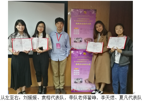 2016年12月10日-11日,第二届全国美国文化中心美国文化知识大赛决赛在广州大学拉开帷幕。beat365手机版官网学生刘媛媛、袁榕,夏凡及法学院李天煜作为学校代表参加了此次比赛,同来自广州大学,中山大学等全国各地的三十余名选手16支代表队展开了激烈角逐,并分别取得了特等奖和二等奖的优异成绩。